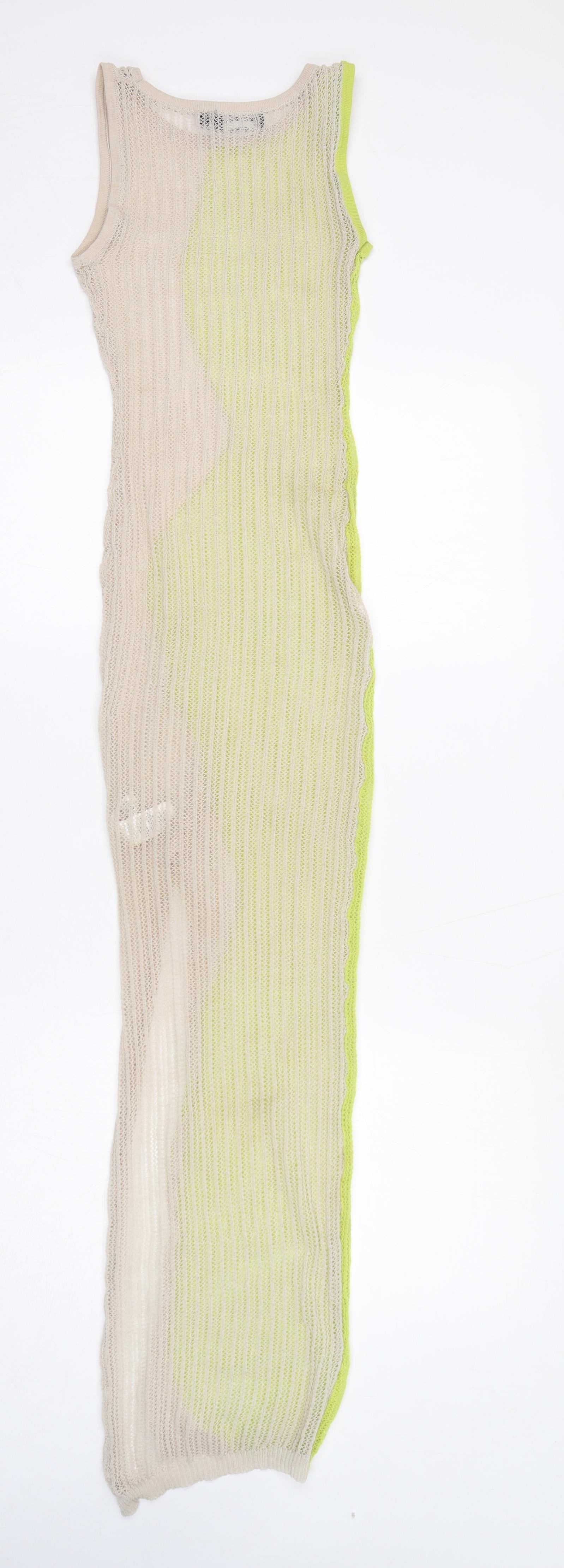 Womens Yellow Colourblock Polyester Bodycon Size XS Round Neck Pullover
