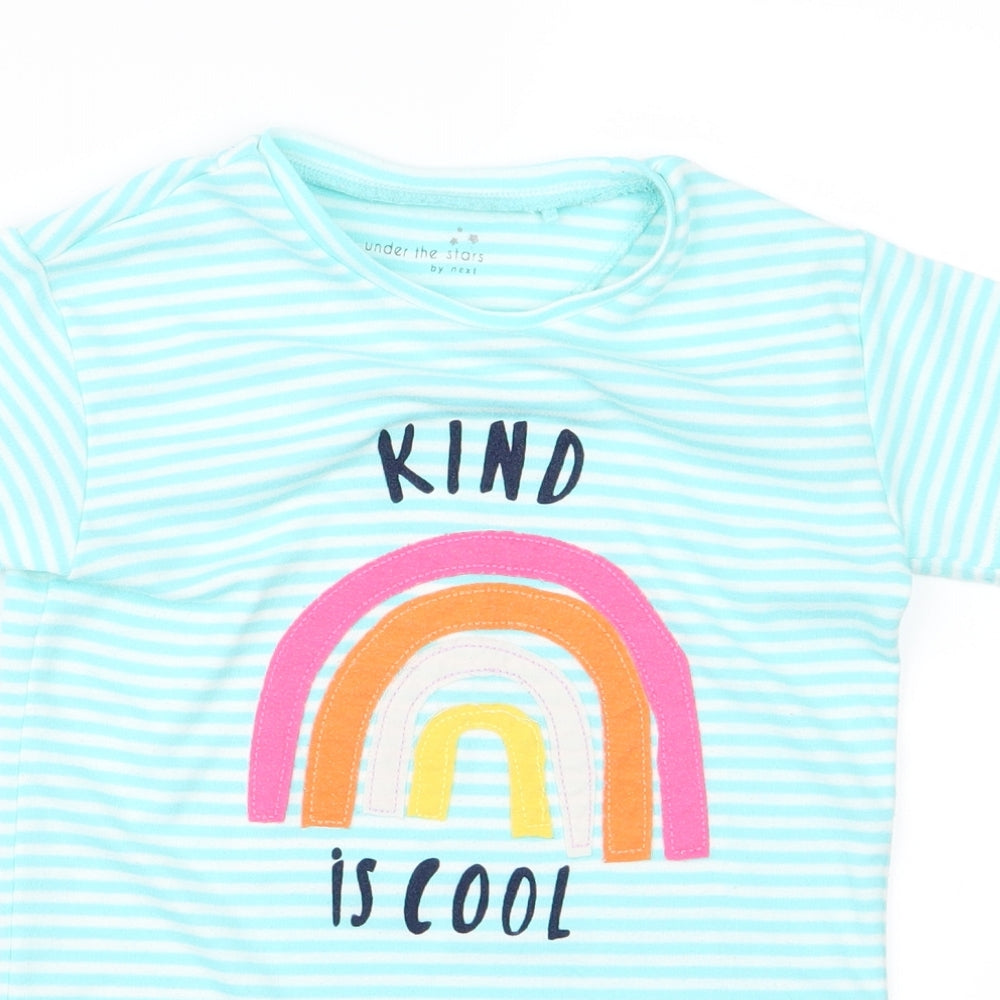 Girls Blue Striped Rayon Basic T-Shirt Size S - rainbow