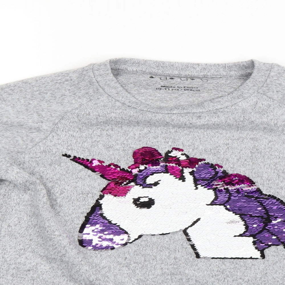 Girls Grey Houndstooth Pullover Sweatshirt Size 10 Years - unicorn