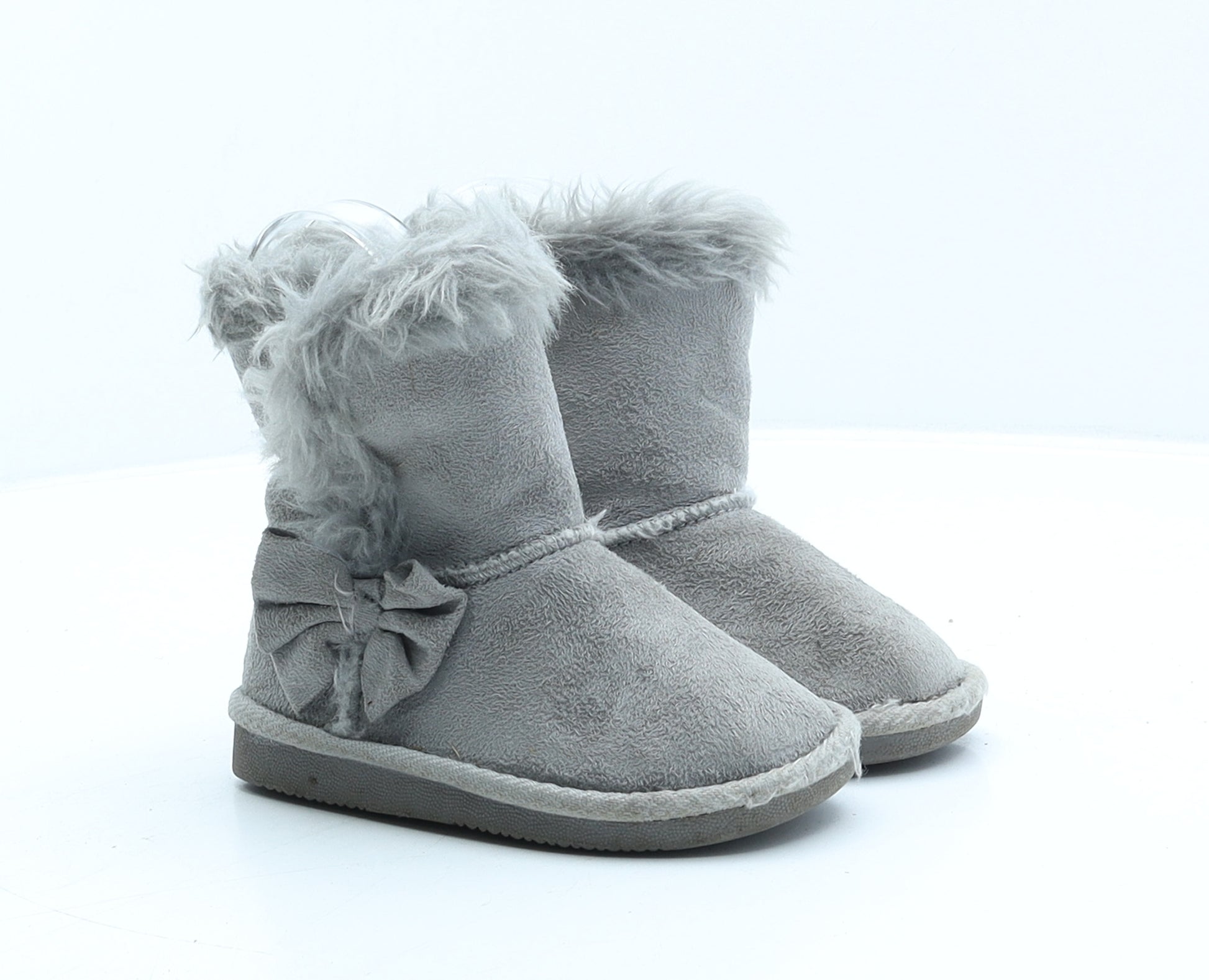 Girls Grey Synthetic Shearling Style Boot UK 7 24