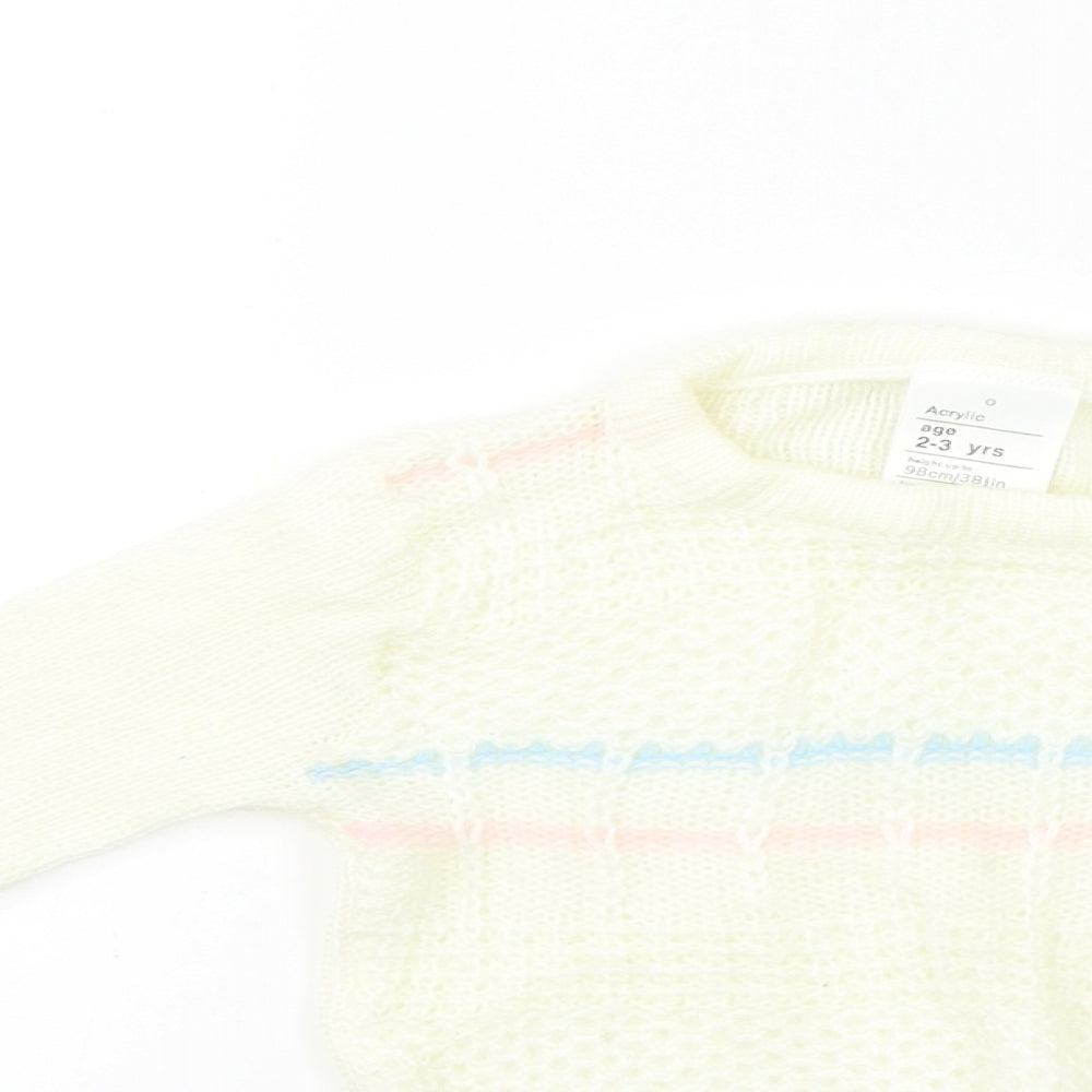 Nutmeg Girls Ivory Fuzzy Pullover Jumper 2-3 Years Pink Flamingo Winter Knit