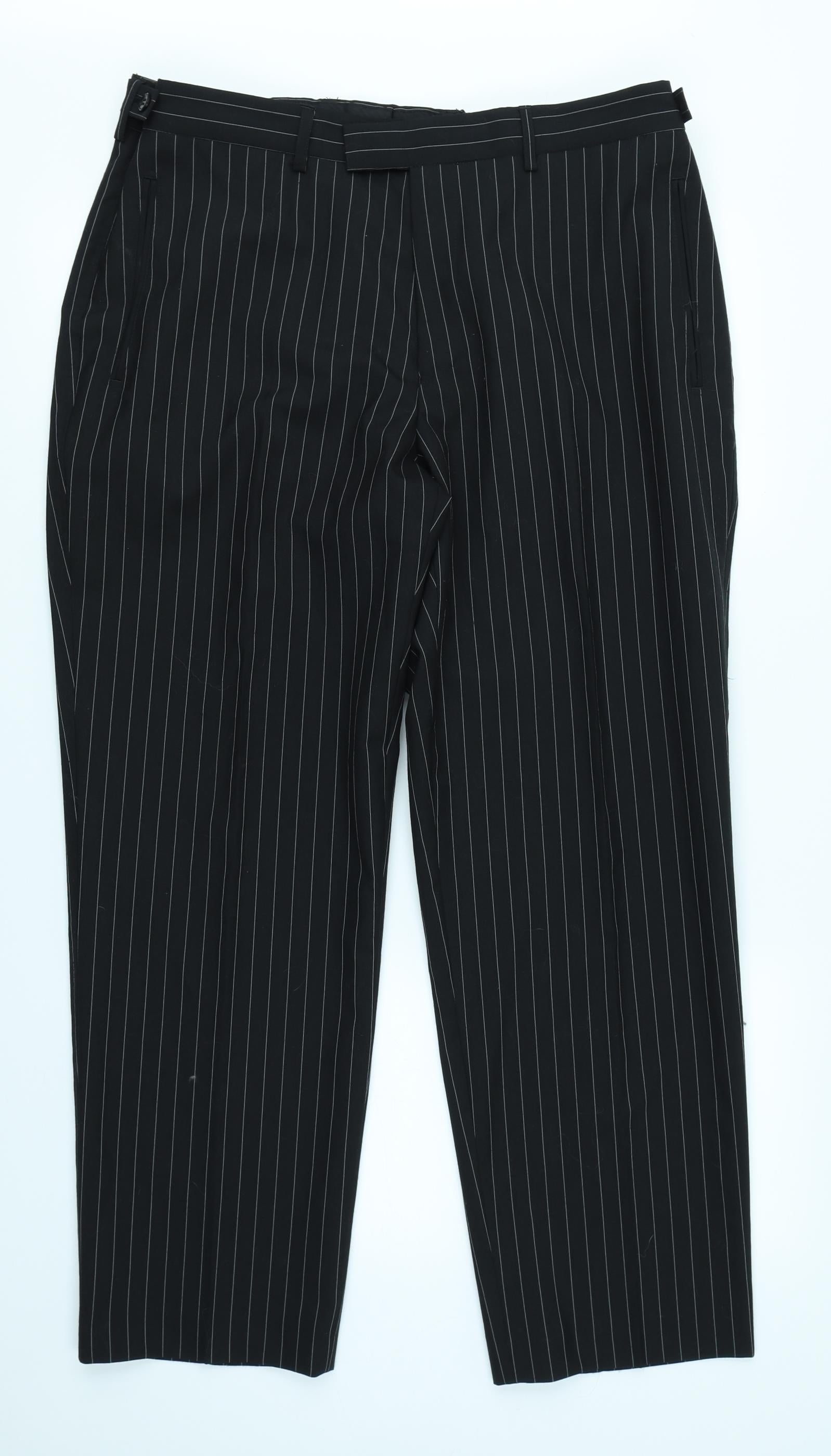 Mens Black Striped Capri Trousers Size 38 in L26 in