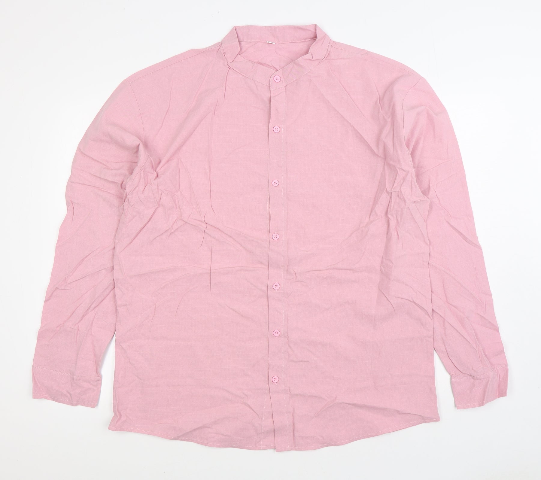 Mens Pink Linen Button-Up Size 2XL Round Neck Button