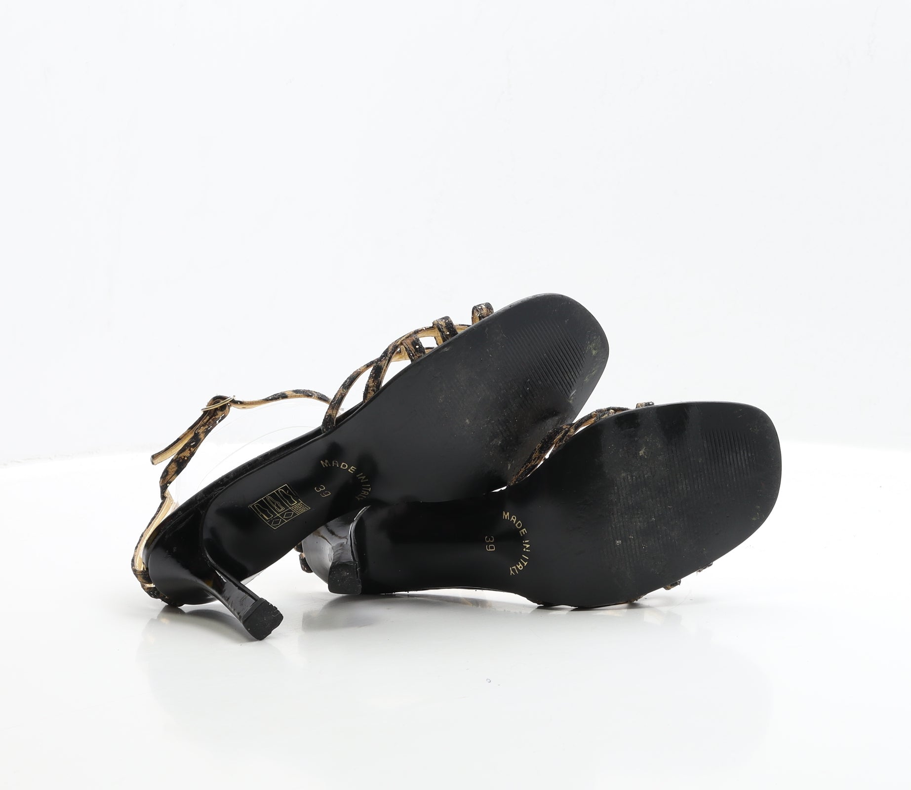 Womens Black Animal Print Polyester Strappy Heel UK 6 EUR 39