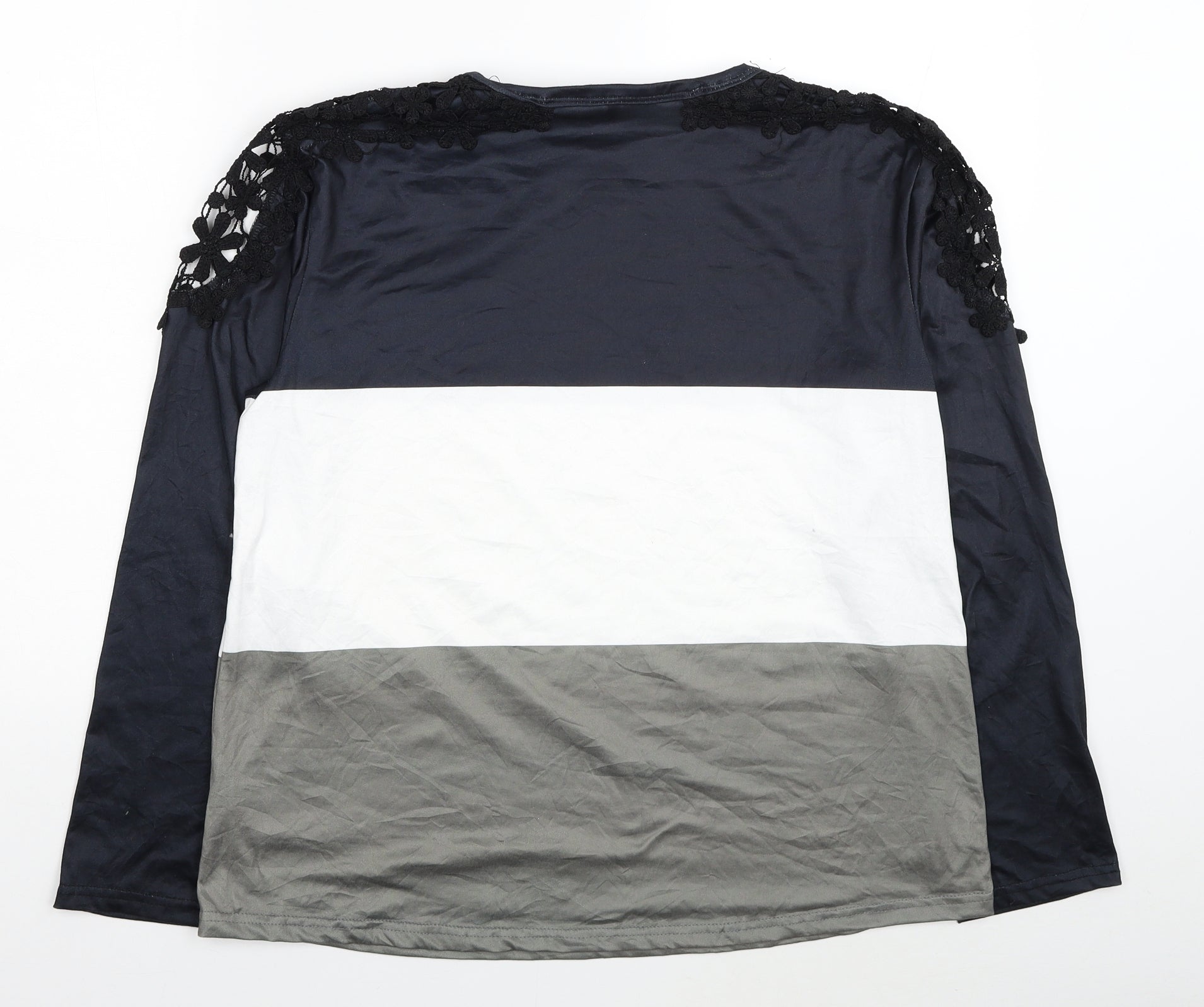 Womens Black Colourblock Polyester Basic Blouse Size 3XL Round Neck - Lace Detail
