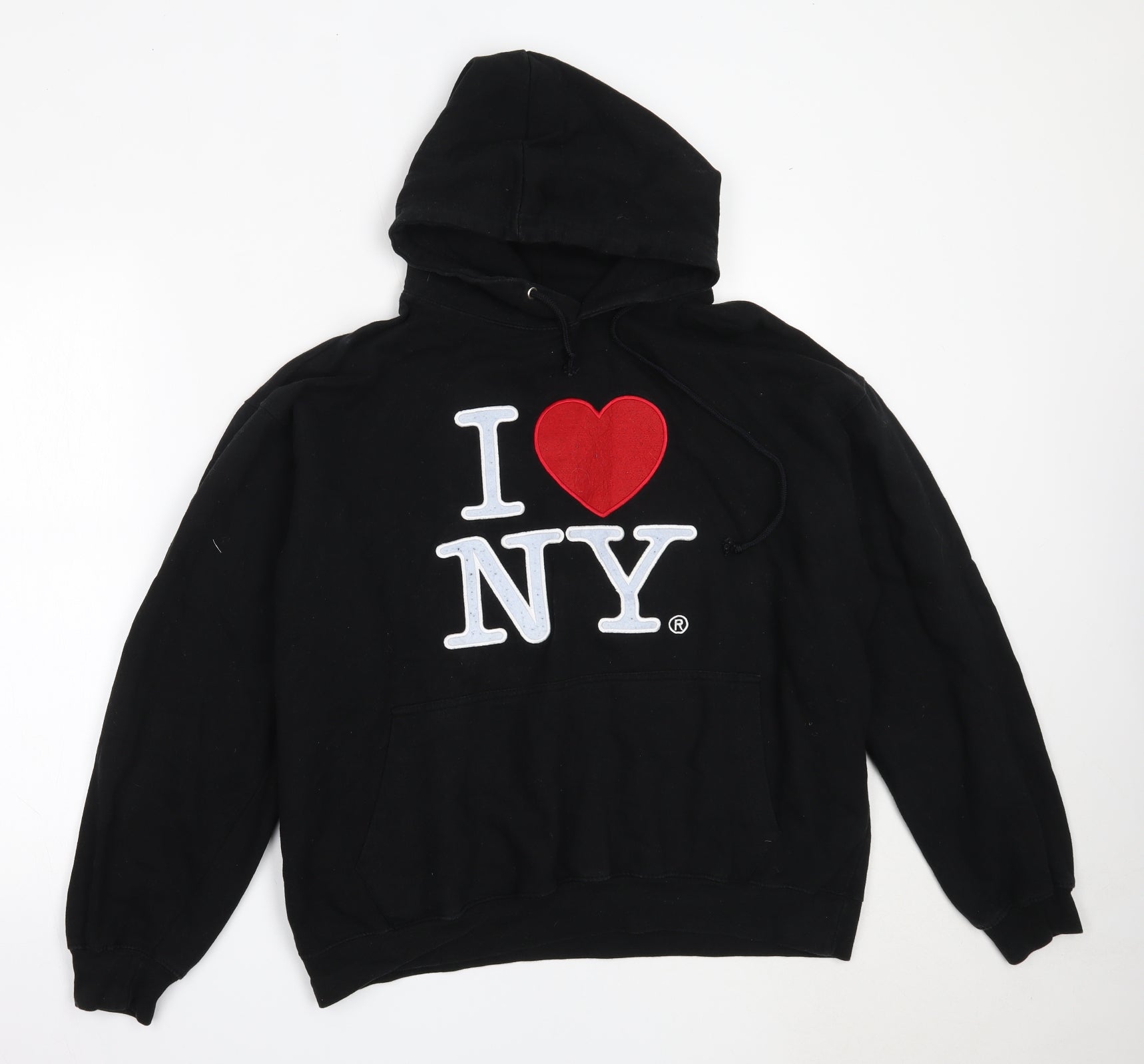 Womens Black Cotton Pullover Hoodie Size L - New york
