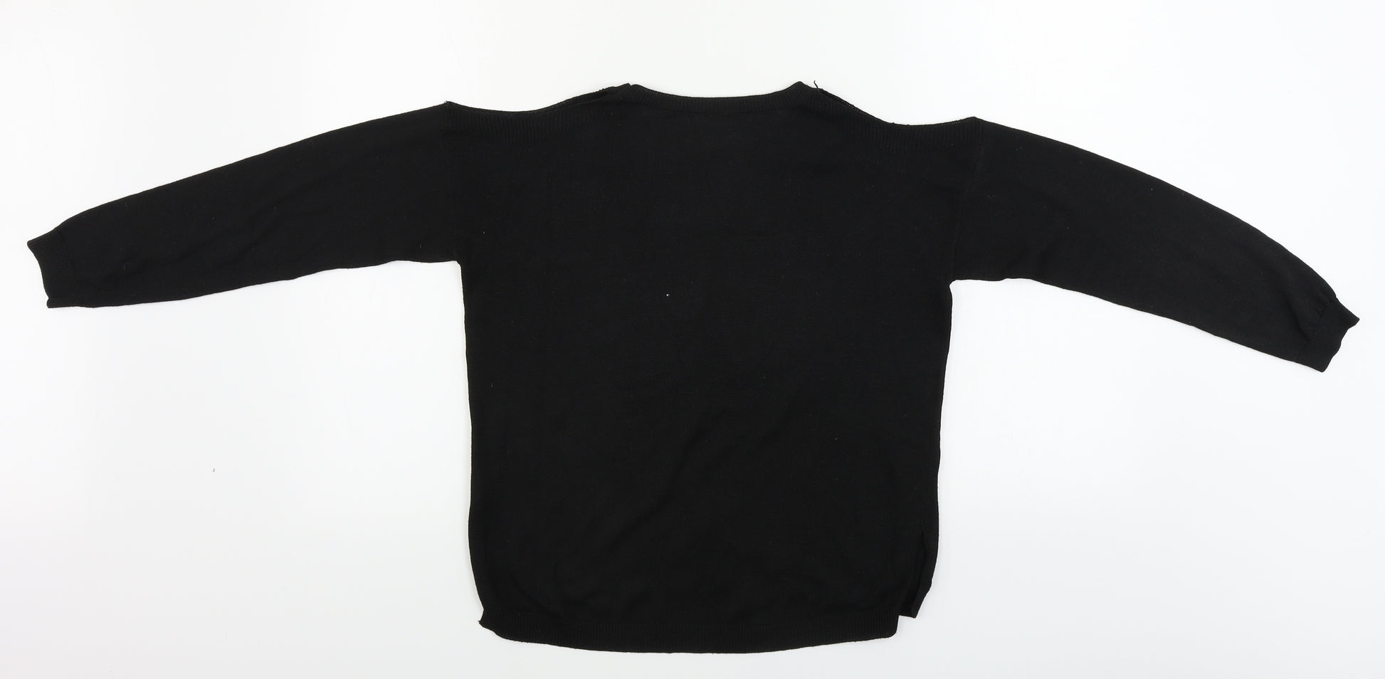 Zara Women Black Viscose Beaded Sleeve V-Neck Jumper Size S