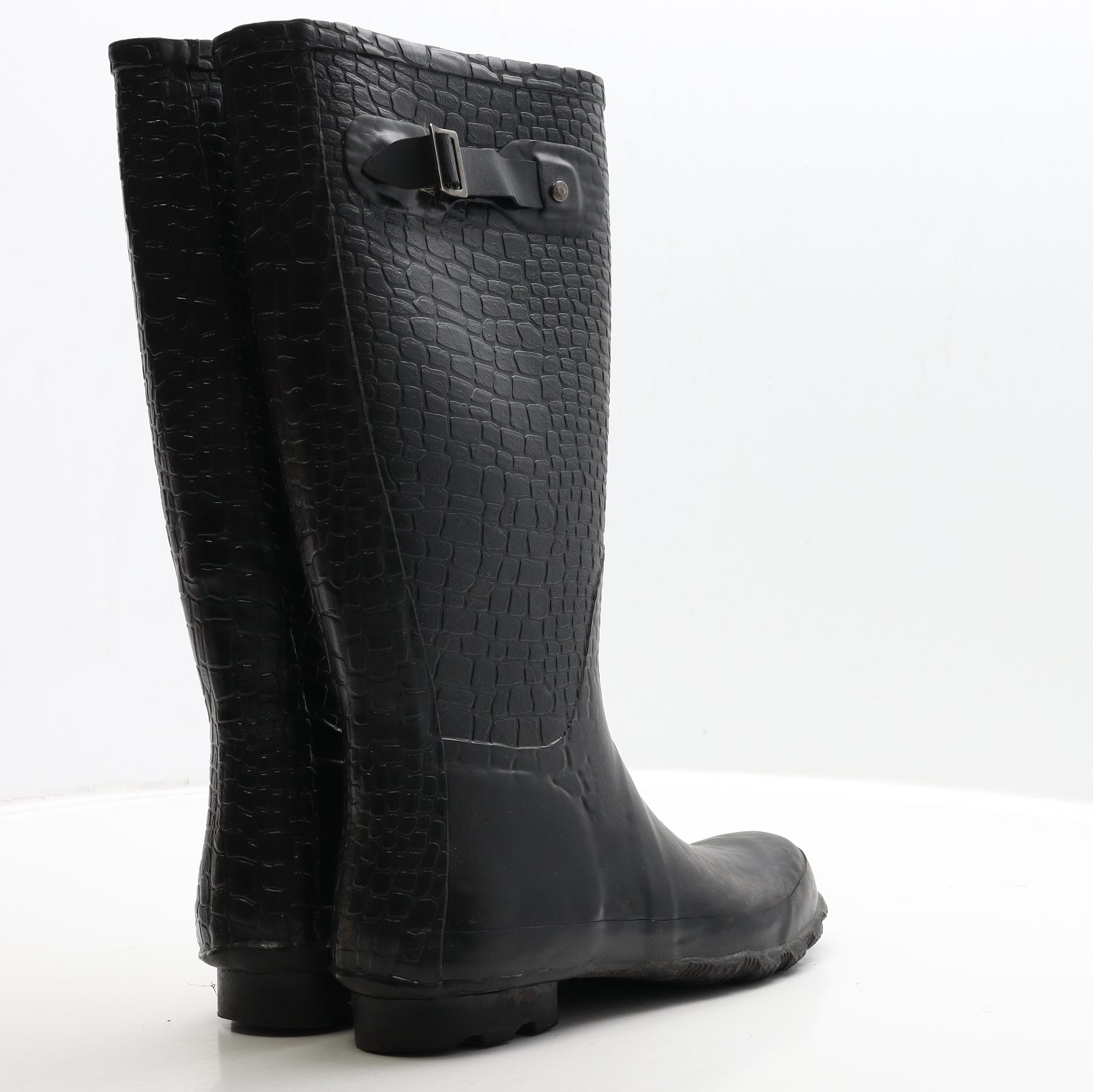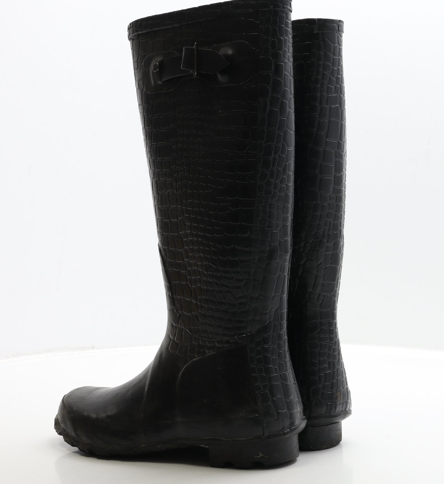 Womens Black Rubber Wellies Boot UK 5 38 - Crocodile Print