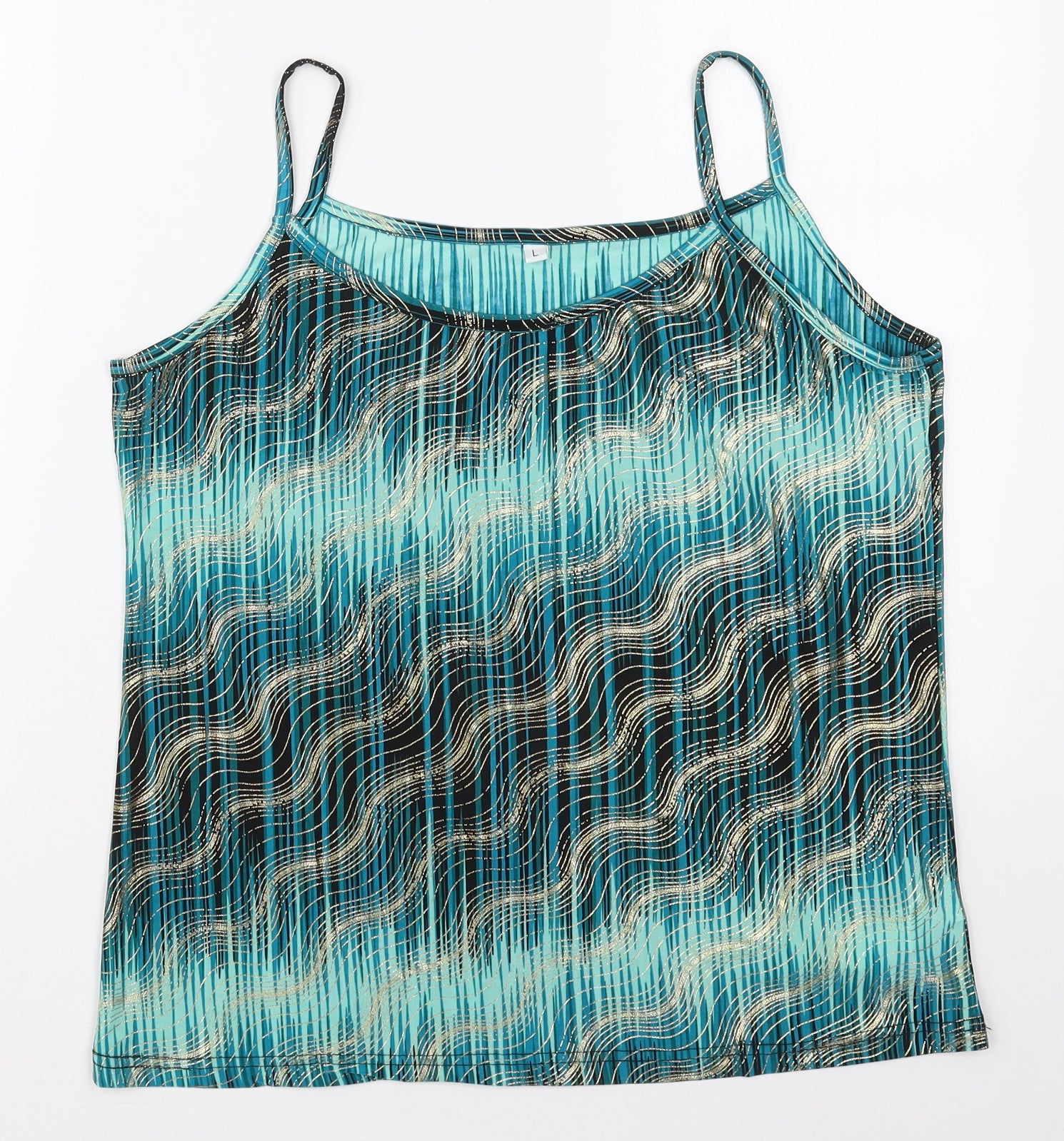 Womens Blue Geometric Polyester Basic Tank Size L Scoop Neck