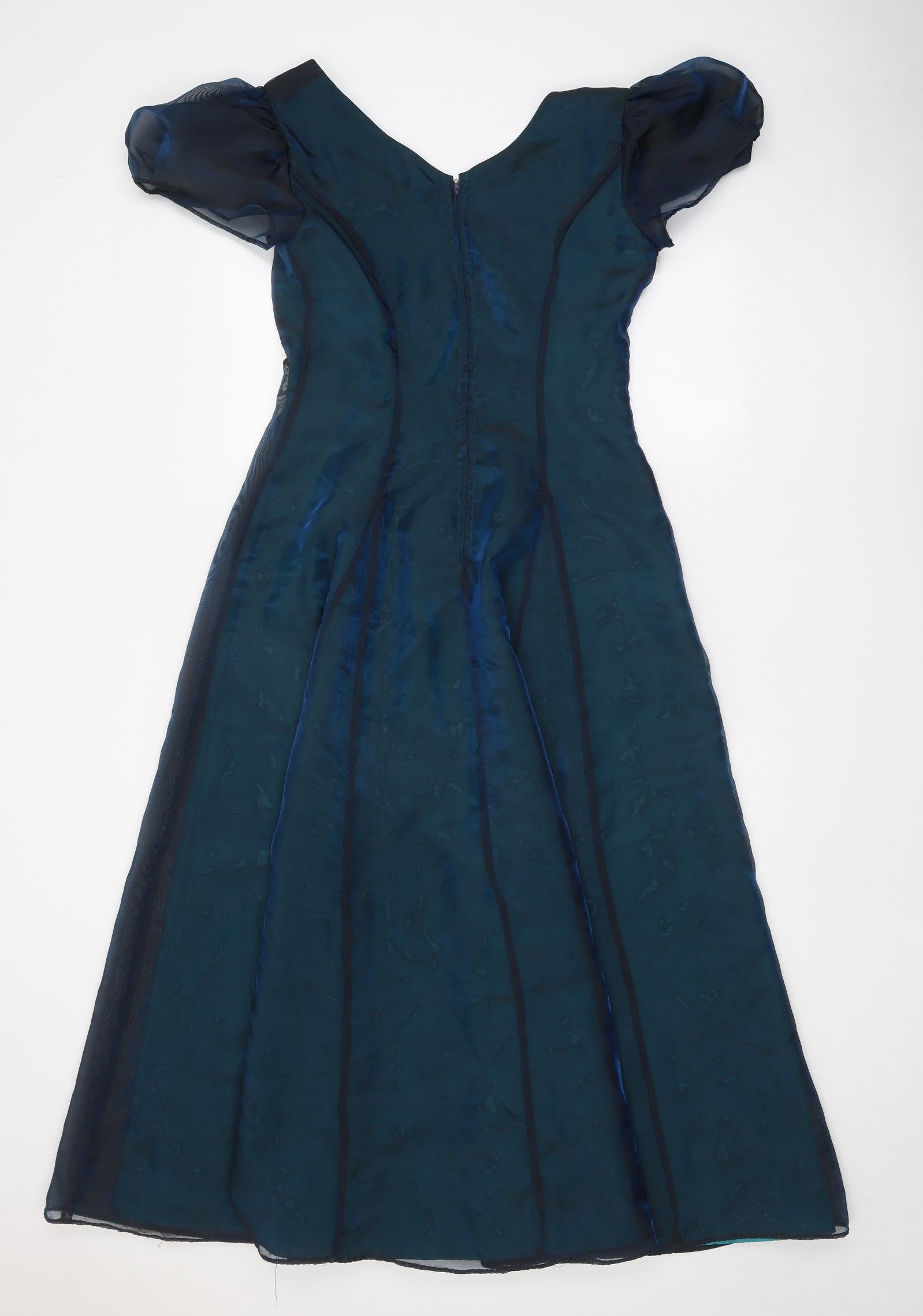 Womens Blue Polyester A-Line One Size V-Neck Zip