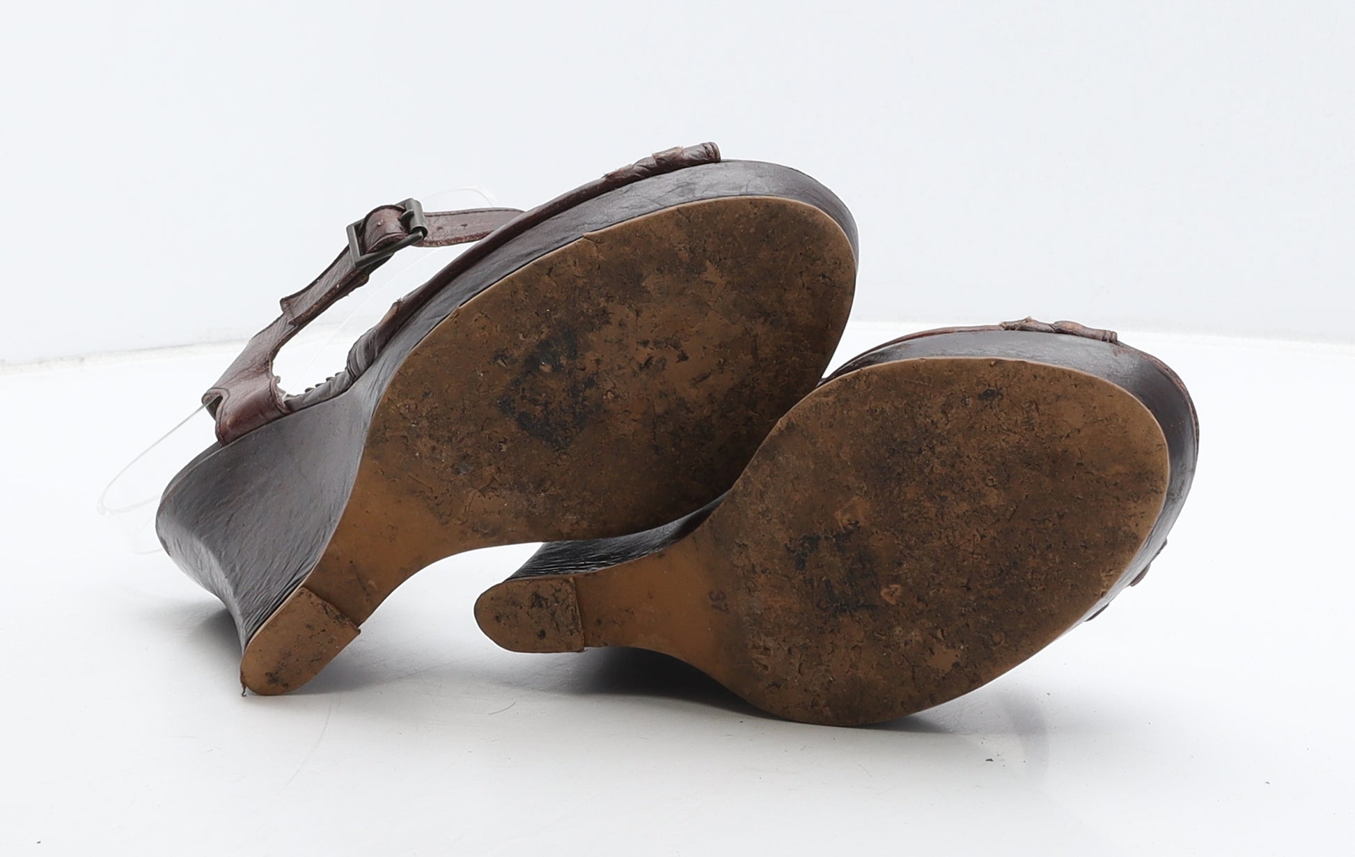 Womens Brown Geometric Leather Strappy Heel UK 4 37