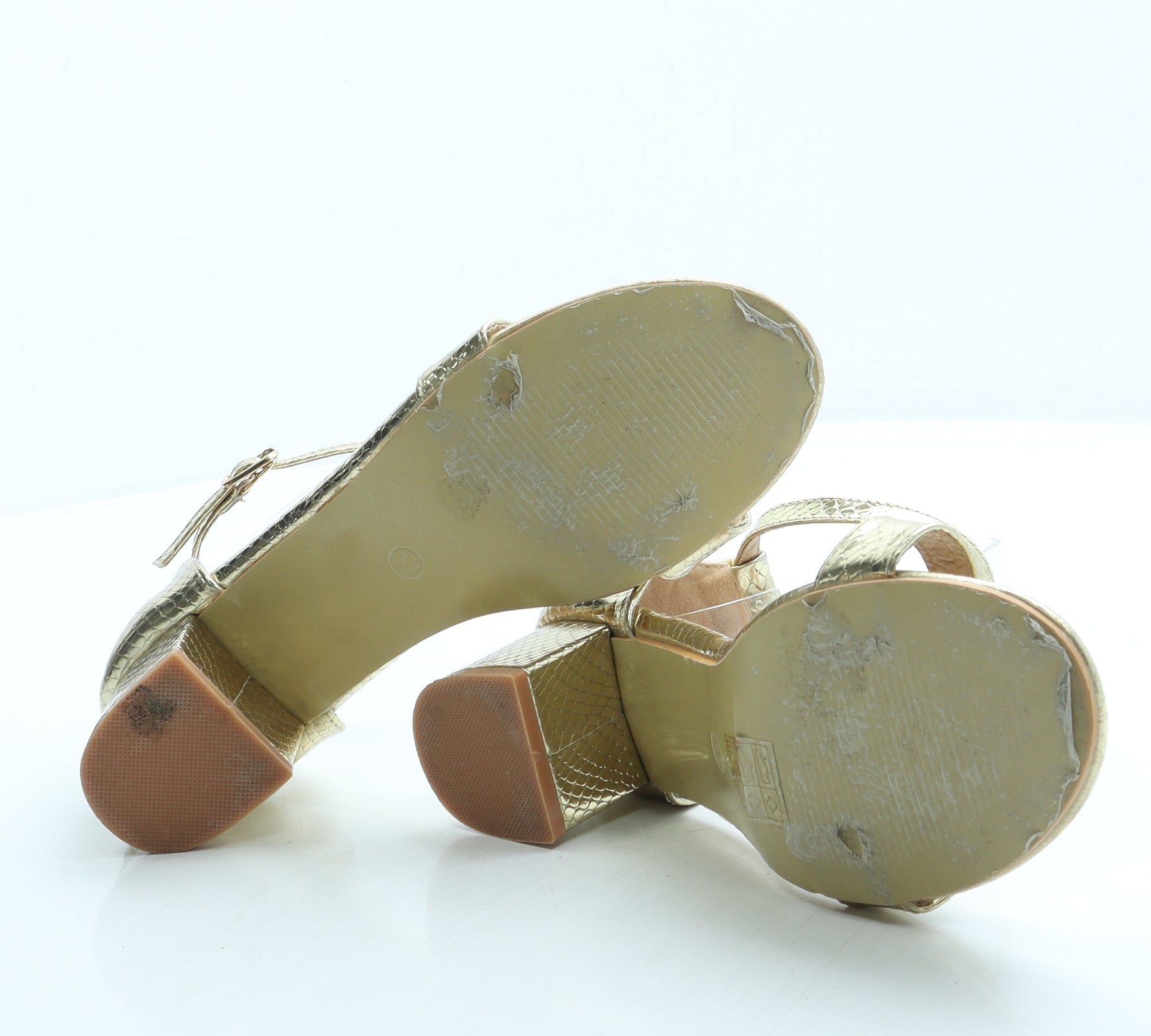 Womens Gold Animal Print Leather Strappy Heel UK 4 37