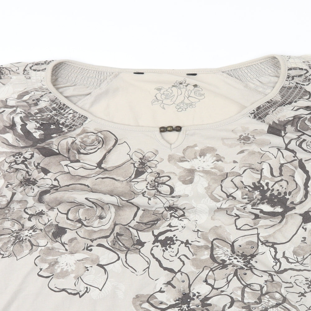 Womens Grey Floral Polyester Basic T-Shirt Size 24 Scoop Neck