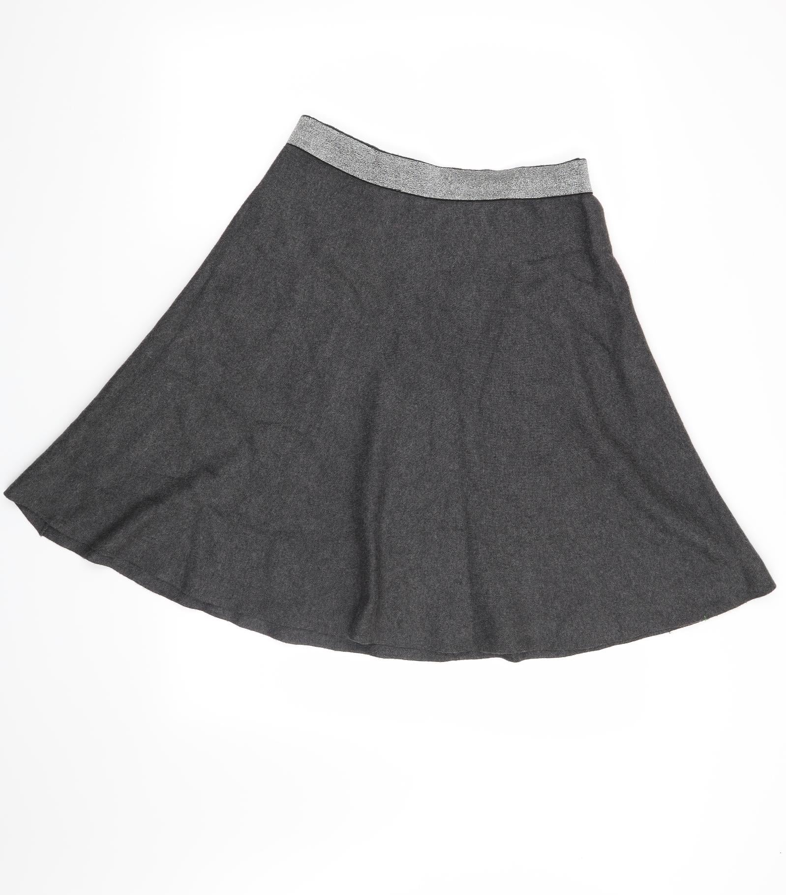 Oasis Women Grey Striped Button Stretch Short Skirt L