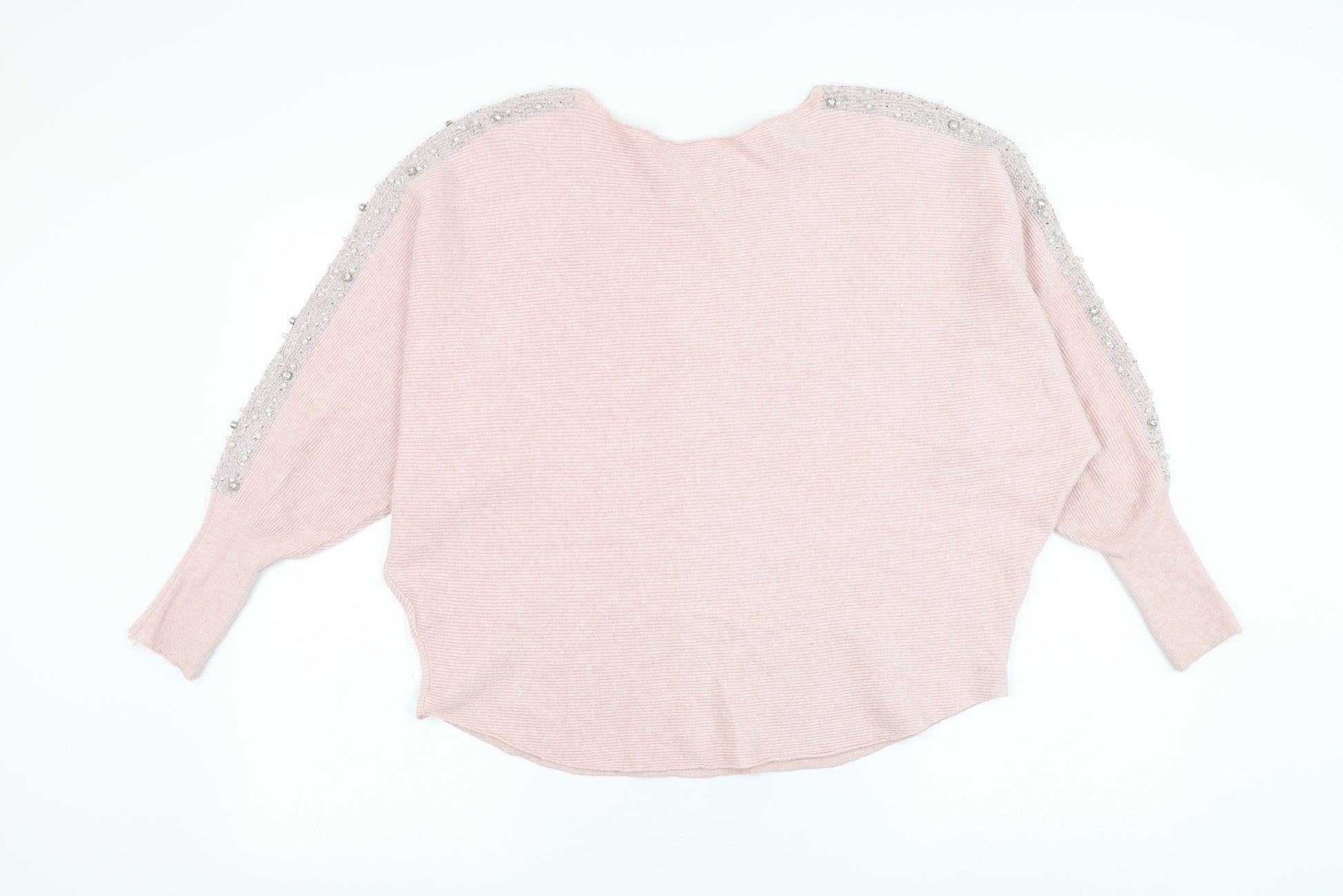 Womens Pink Boat Neck Viscose Pullover Jumper Size XL
