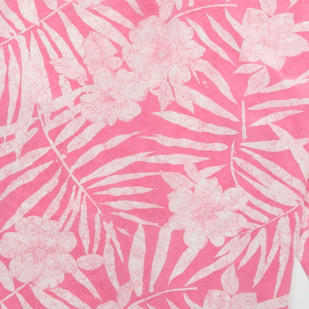 Womens Pink Floral Satin Basic Button-Up Size 14