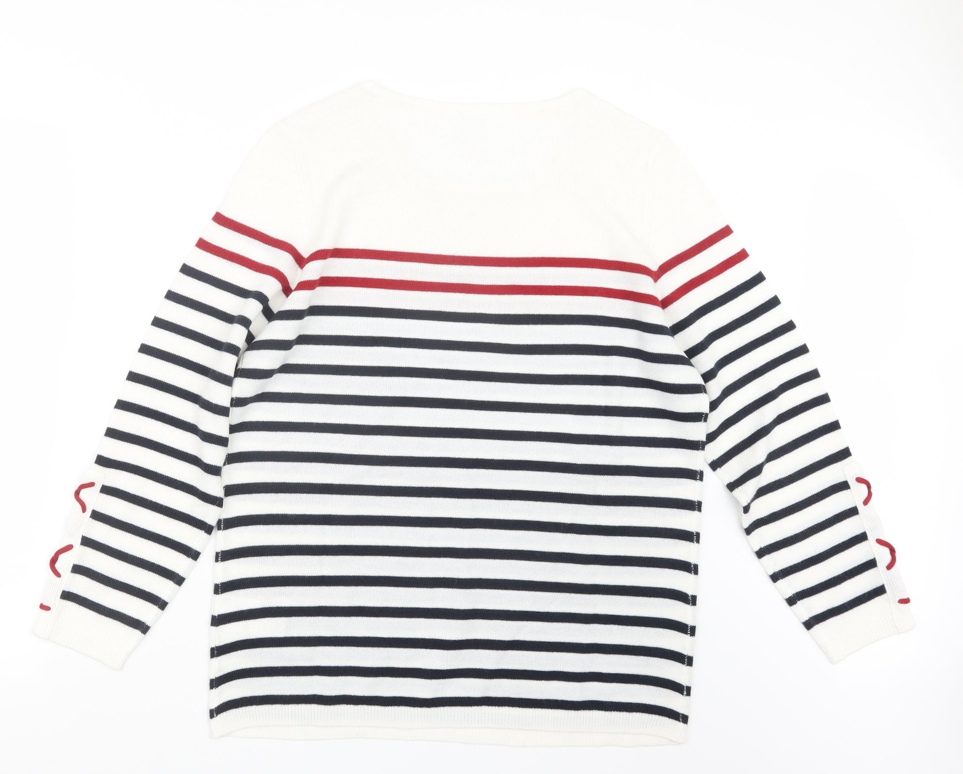 Womens White Striped Knit Pullover Jumper Size 16