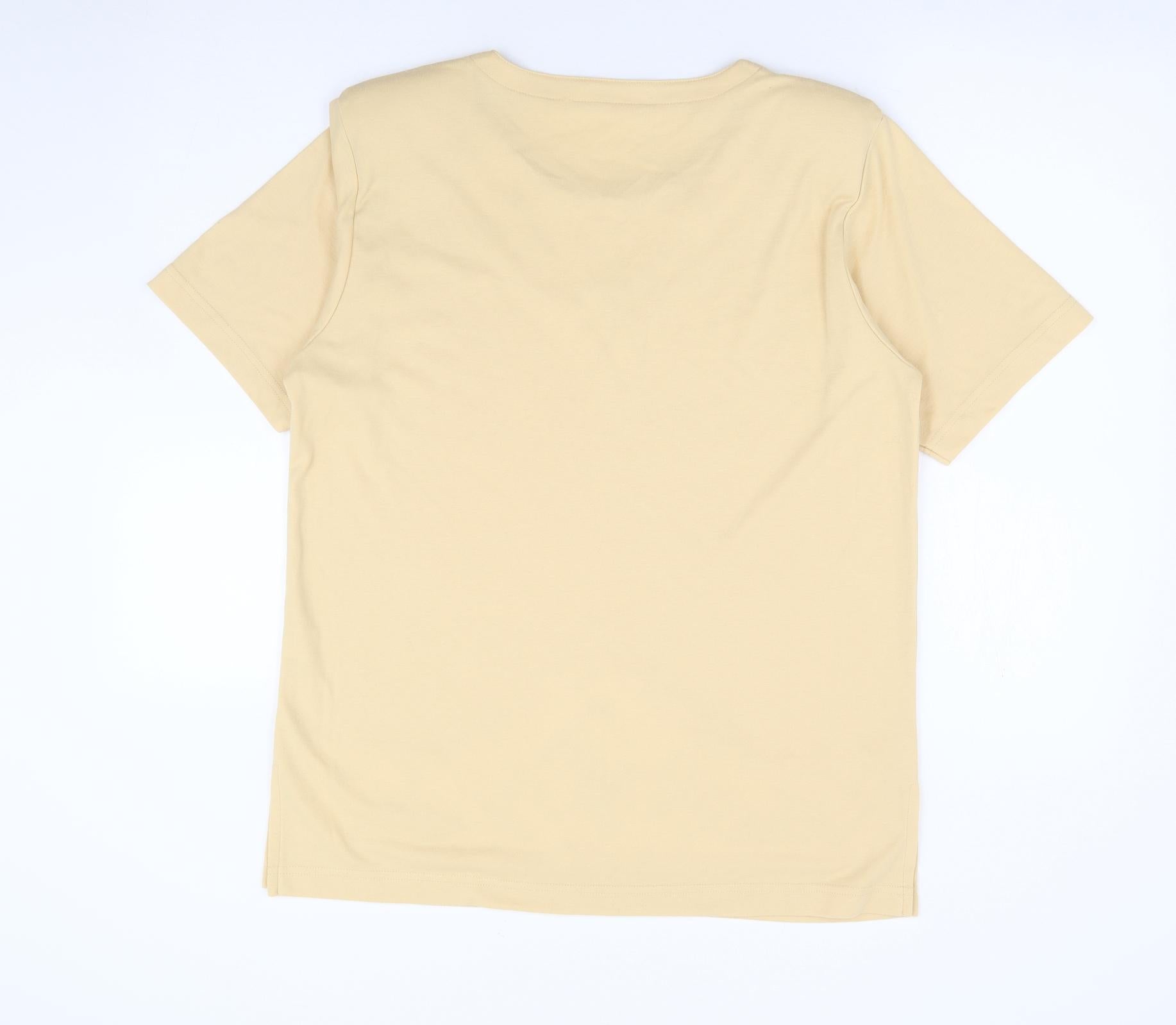 Womens Yellow Floral Polyester Basic T-Shirt Size M Round Neck