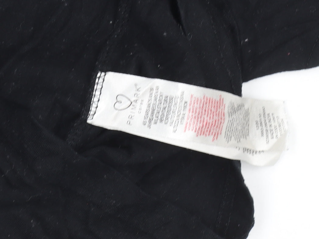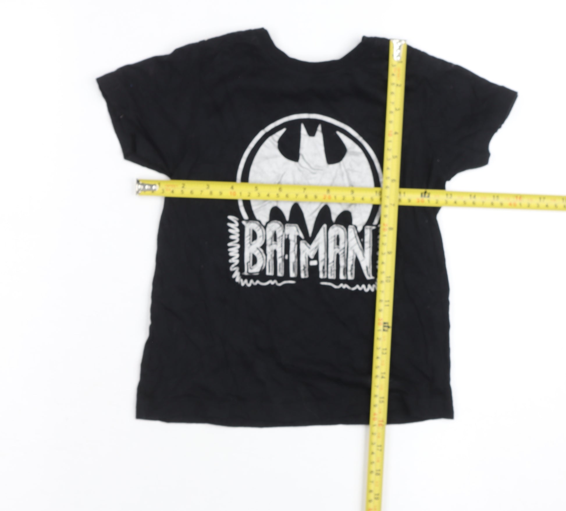 This Primark boys’ Batman T-shirt is a must-have addition to any young superhero fan’s wardrobe. Crafted from soft 100% cotton jersey fabric, it ensures comfort, breathability, and all-day ease, perfect for playtime, everyday wear, or lounging at home. The shirt features a bold, large-scale Batman logo graphic on the front, making it instantly recognisable to fans of the DC superhero. Its black colourway adds a classic and versatile look that pairs effortlessly with jeans, joggers, or shorts—ideal for casual dressing in spring and summer months. Designed with a regular fit, short sleeves, and a crew neckline, this T-shirt delivers a timeless silhouette that suits active kids and provides full freedom of movement. The cotton fabric is lightweight yet durable, ensuring repeated wear and washes without losing shape. Easy to care for, it is machine washable for parents’ convenience. Suitable for children aged 4–5 years (height approximately 110cm), this Batman tee features breathable construction, a smooth feel against the skin, and graphic print that stands out while maintaining a simple, wearable style. The shirt remains in very good pre-owned condition, showing only mild signs of previous use and no major flaws. This is a great value choice for parents looking for a fun, comfortable, and affordable licensed T-shirt for their little superhero. The Primark brand guarantees quality and comfort at an accessible price, while the iconic Batman logo makes this piece a popular favourite among kids who love comic book and film characters. Whether worn for playdates, theme days, or casual outings, this Batman T-shirt adds adventure to everyday wear. A fun, reliable and stylish essential for little fans of Gotham’s Dark Knight.