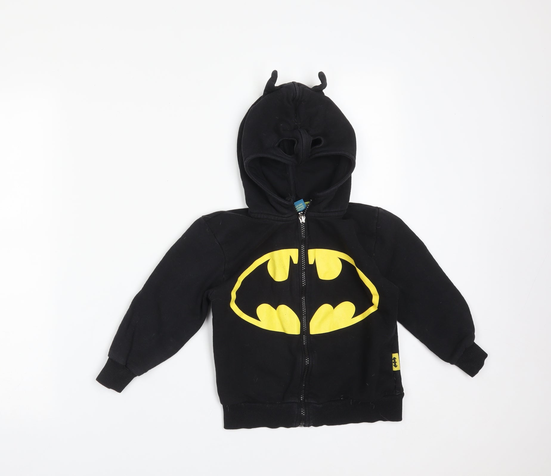 Boys Black Cotton Full Zip Hoodie Size 5-6 Years - BATMAN