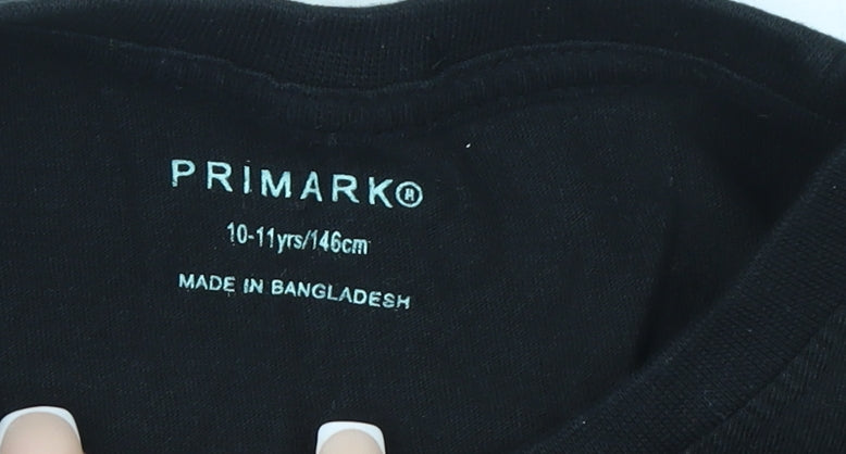 Add a touch of cool to your young one’s wardrobe with this bold Primark Boys Black 'Legend' T-Shirt in size 10-11 years. Made from soft and breathable 100% cotton, this tee ensures all-day comfort whether for school, play, or weekends. The design features a vibrant multicoloured block graphic with the word 'LEGEND' across the chest, giving it a trendy and confident look that young fashion lovers will adore. The black base makes it versatile and easy to pair with jeans, shorts, or joggers, while the colourful accents add a fun and eye-catching twist. This short sleeve crew neck T-shirt has a regular fit and a lightweight jersey fabric, providing breathability and comfort even during active days. The pullover style offers ease of dressing, and the cotton material keeps it comfortable throughout any season, particularly in spring, summer, and autumn. Perfect for casual wear, playtime, or everyday layering, this shirt allows for movement and style without compromising comfort. While pre-owned, the T-shirt remains in very good condition with only light evidence of wear and no significant flaws such as stains or tears. It has been well maintained and is machine washable, making it simple to care for and ideal for frequent use. Whether for a stylish everyday outfit or a relaxed weekend look, this Primark 'Legend' tee delivers both comfort and personality at excellent value. Ideal for active boys who enjoy expressive, casual fashion, this piece combines quality fabric, a fun graphic design, and easy-care convenience – a wardrobe staple that looks just as good on the playground as it does at a get-together. Refresh your child’s casual collection with this standout yet practical piece, ready to become their new go-to favourite.