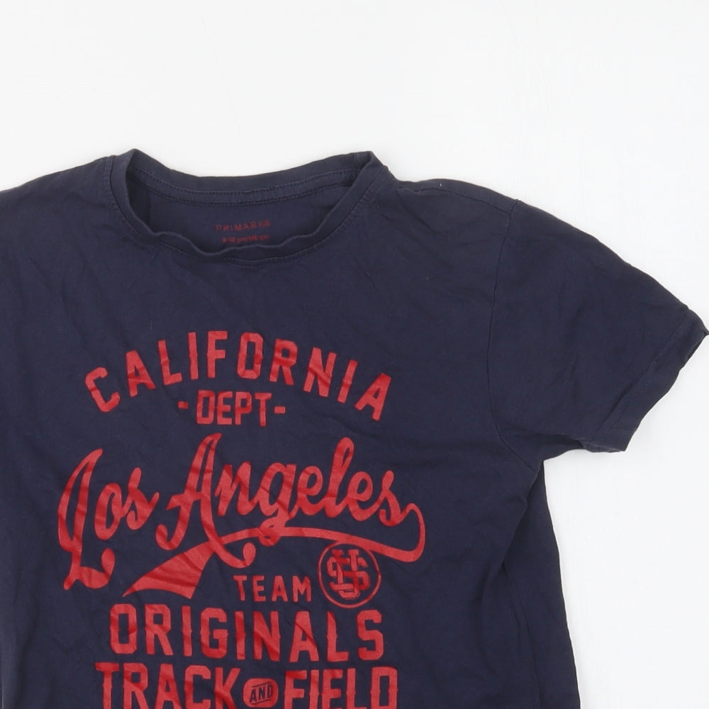 Boys Blue Cotton Basic T-Shirt Size 9-10 Years Crew Neck - California