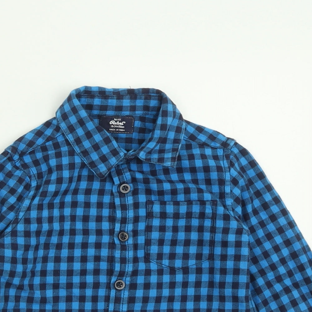 Boys Blue Gingham Cotton Basic Button-Up Size 18-24 Months Collared Button
