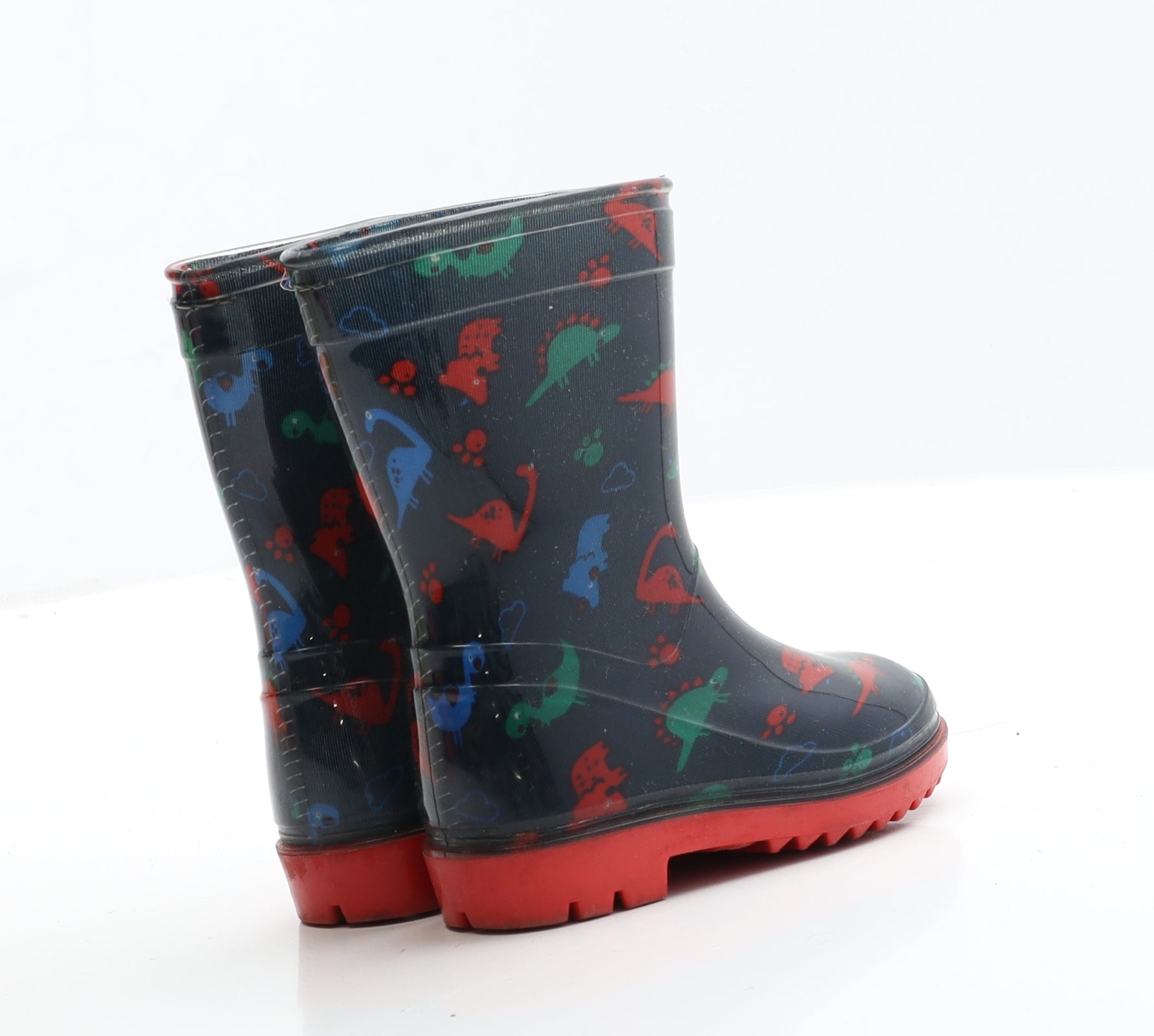 Boys Blue Rubber Wellies Boot 4 - Dinosaur Detail