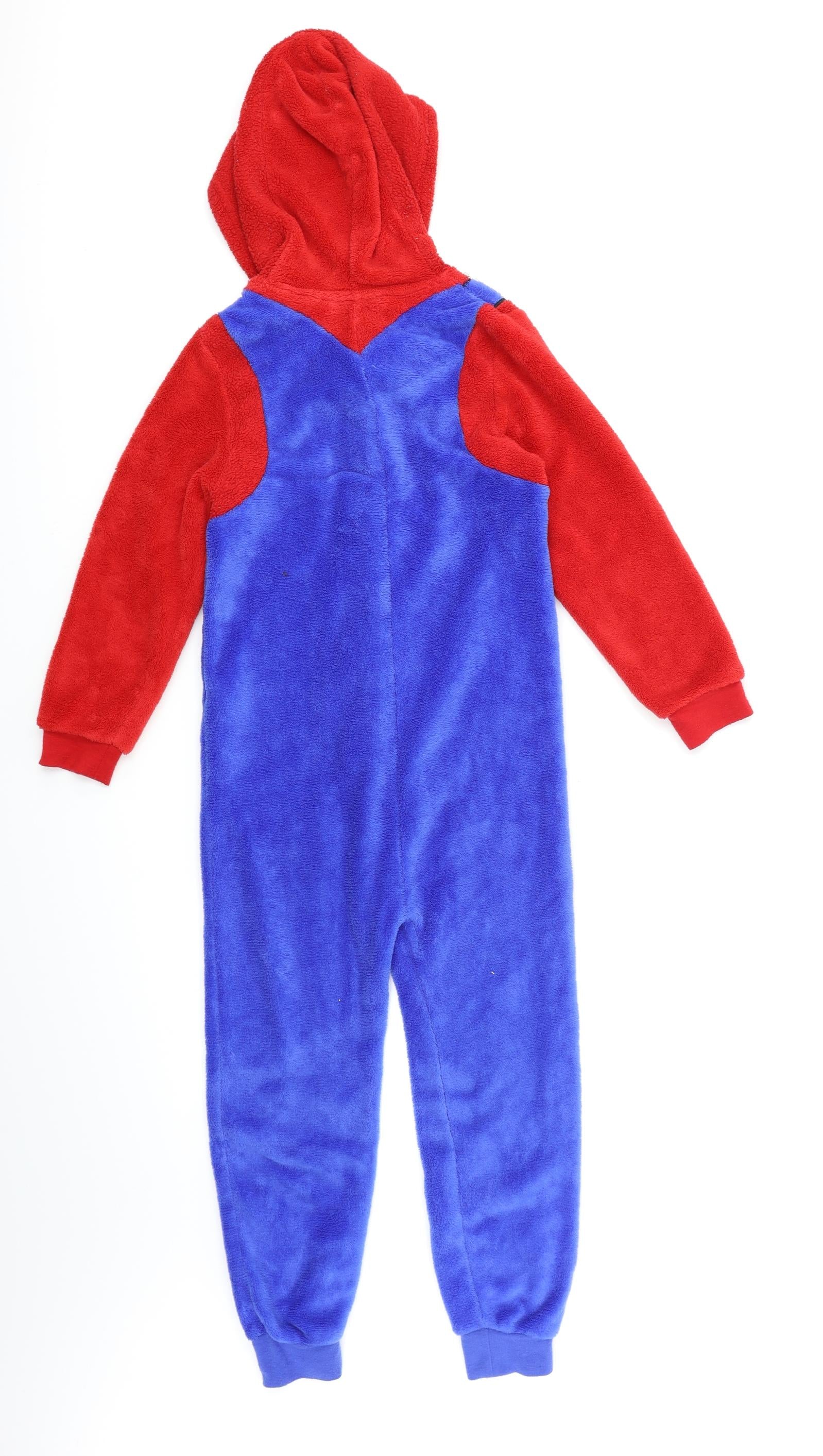 Boys Blue Solid Fleece One Piece Size 7-8 Years - Super Mario