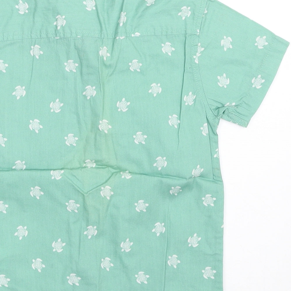 Boys Green 100% Cotton Basic Button-Up Size 4-5 Years Collared Button - Tortoise