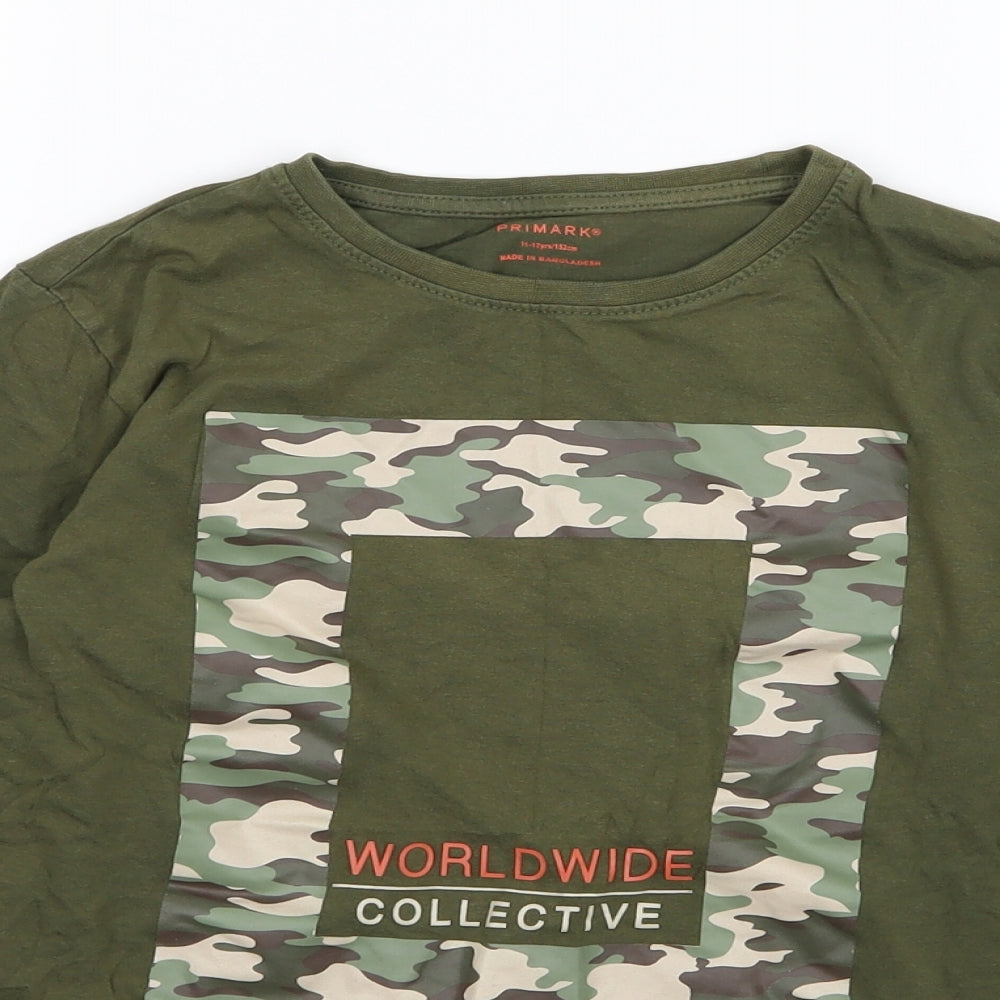 Boys Green Camouflage Jersey Basic T-Shirt Size 11-12 Years