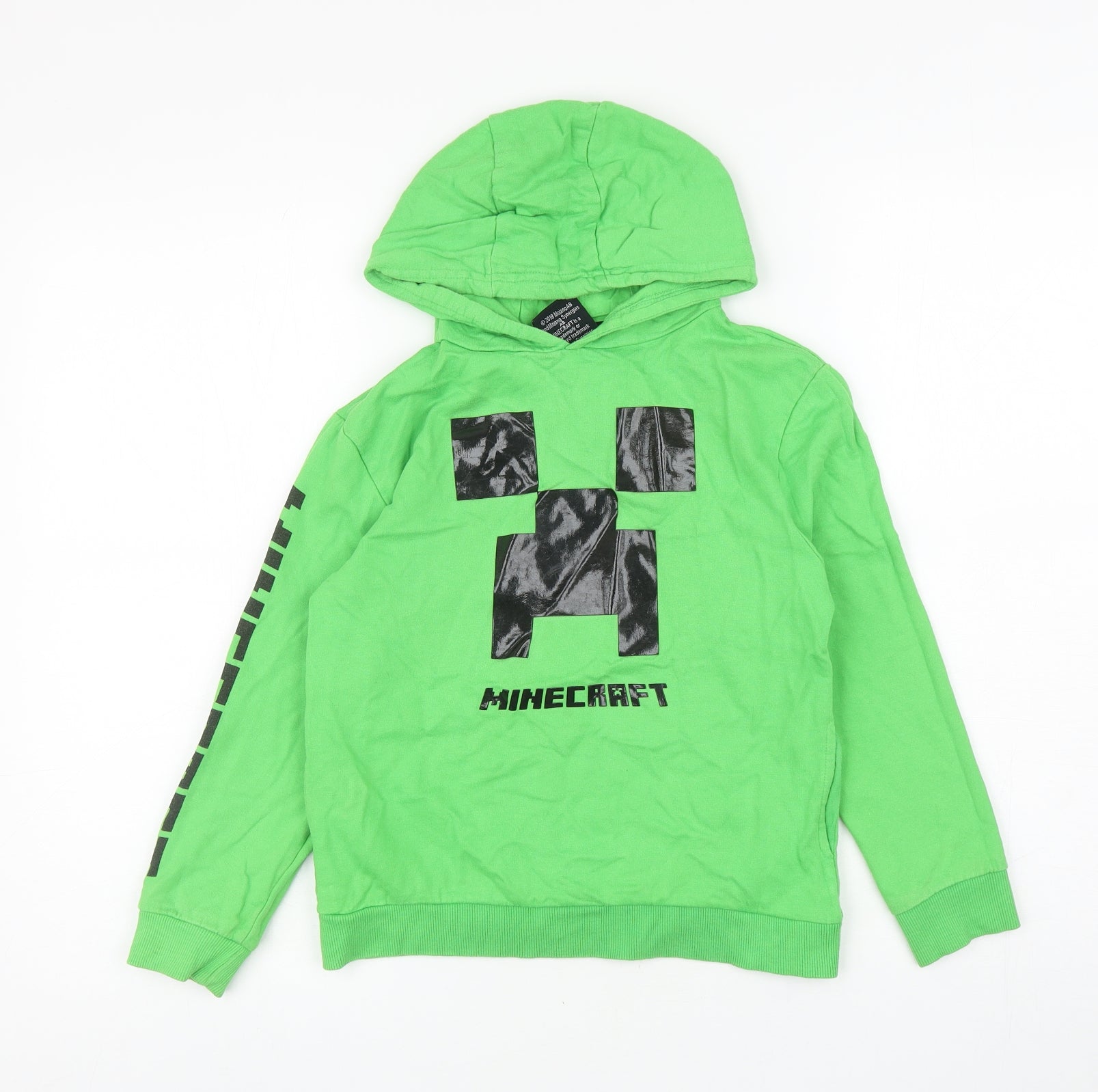 Boys Green Cotton Pullover Hoodie Size 8-9 Years Pullover - Minecraft Creeper