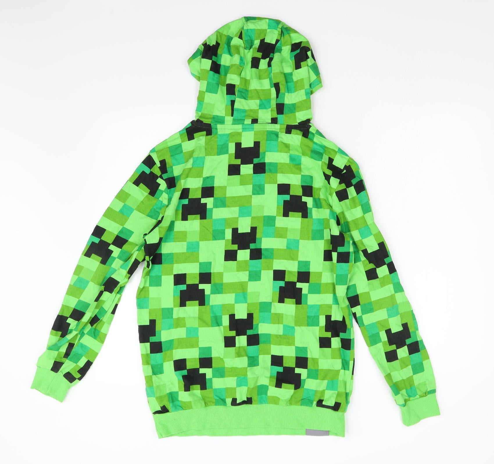 Boys Green Geometric Pullover Hoodie Size 13-14 Years - Mine Craft