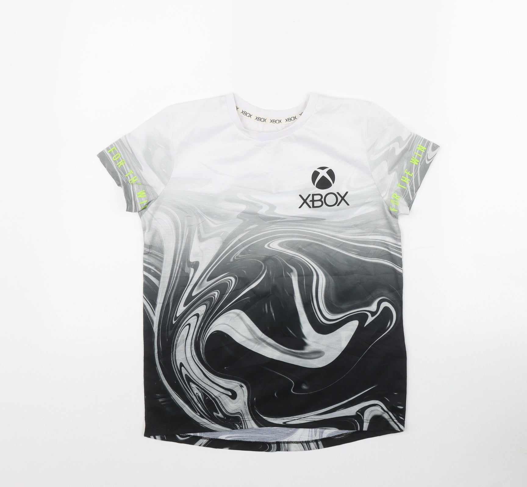 Boys Grey Polyester Basic T-Shirt Size 9-10 Years Round Neck Pullover - Marble print XBOX