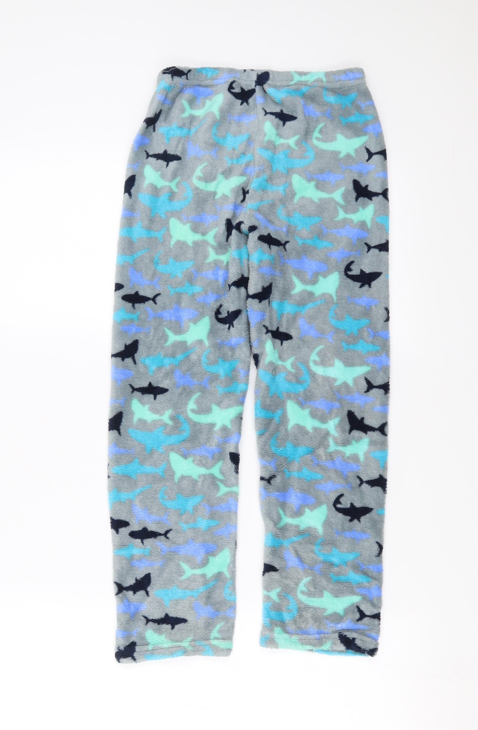 Boys Grey Solid Fleece Pyjama Pants Size 7-8 Years - Shark pattern