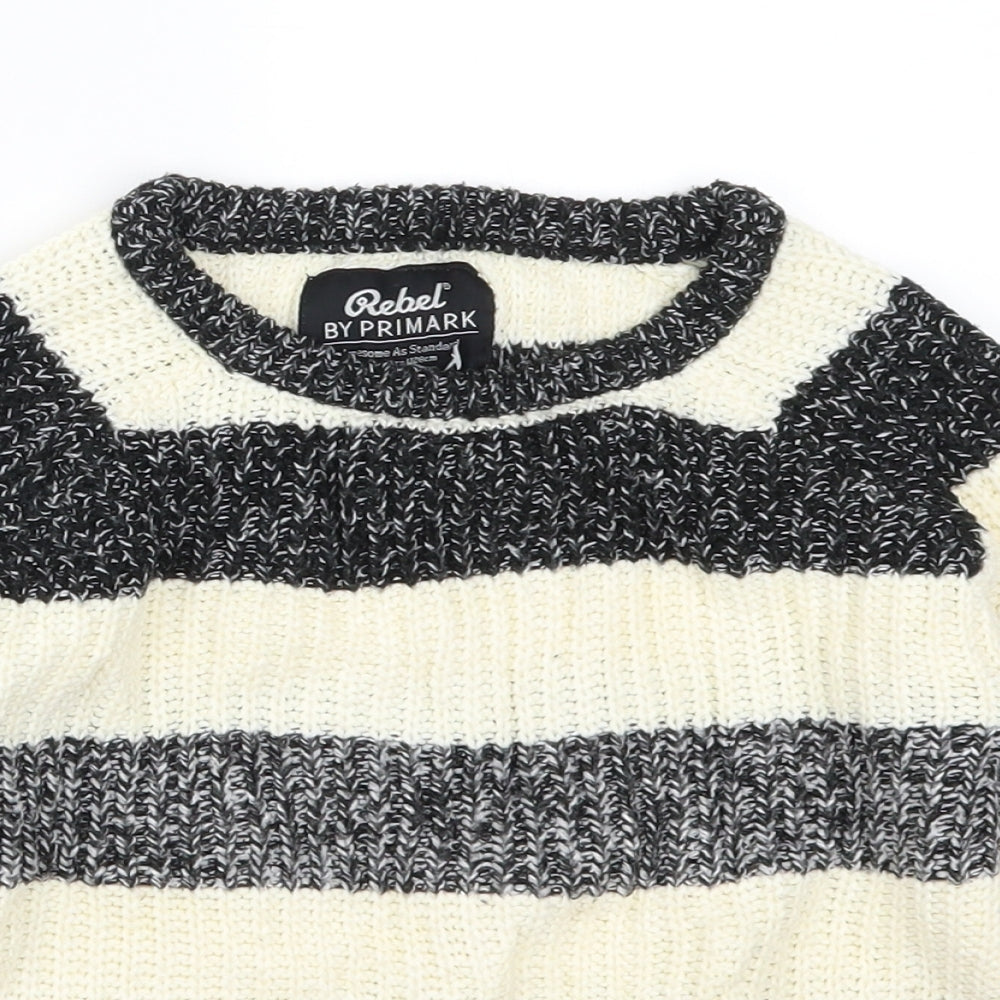 Boys Grey Striped Knit Pullover Jumper Size 7-8 Years