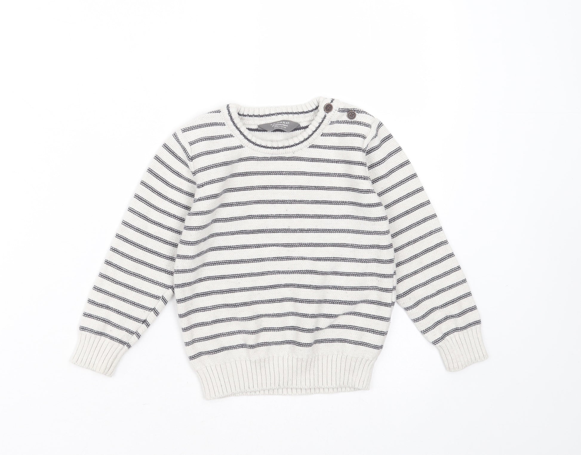 Boys Ivory Round Neck Striped Cotton Pullover Jumper Size 2-3 Years