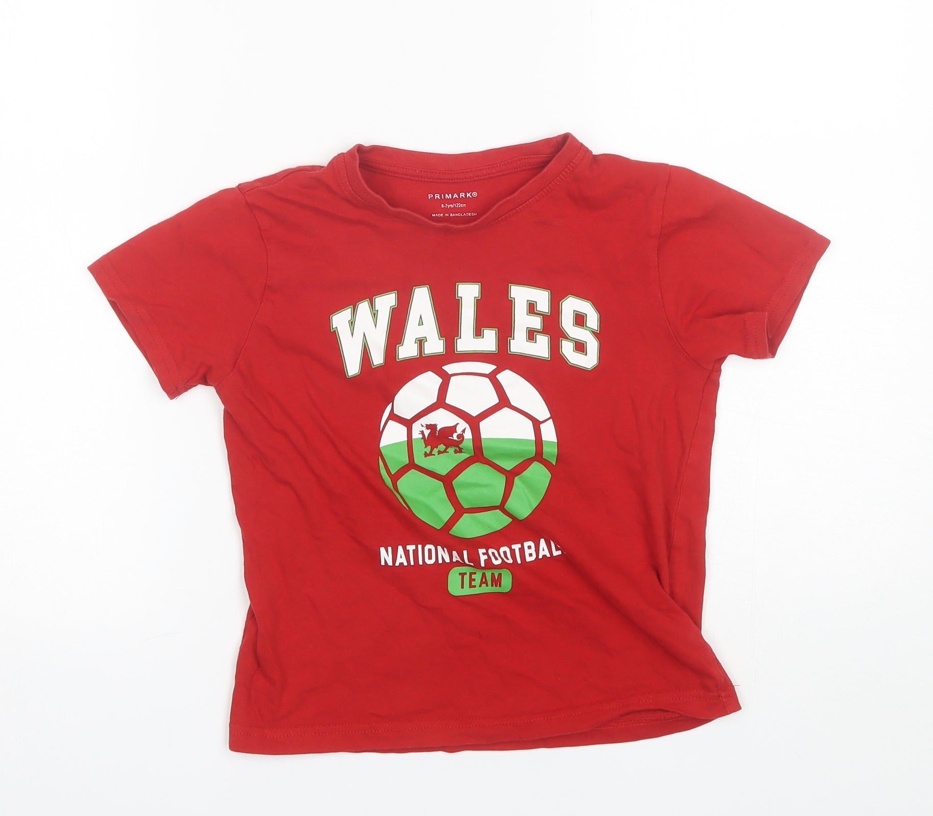 Boys Red Cotton Basic T-Shirt Size 6-7 Years Round Neck - Wales