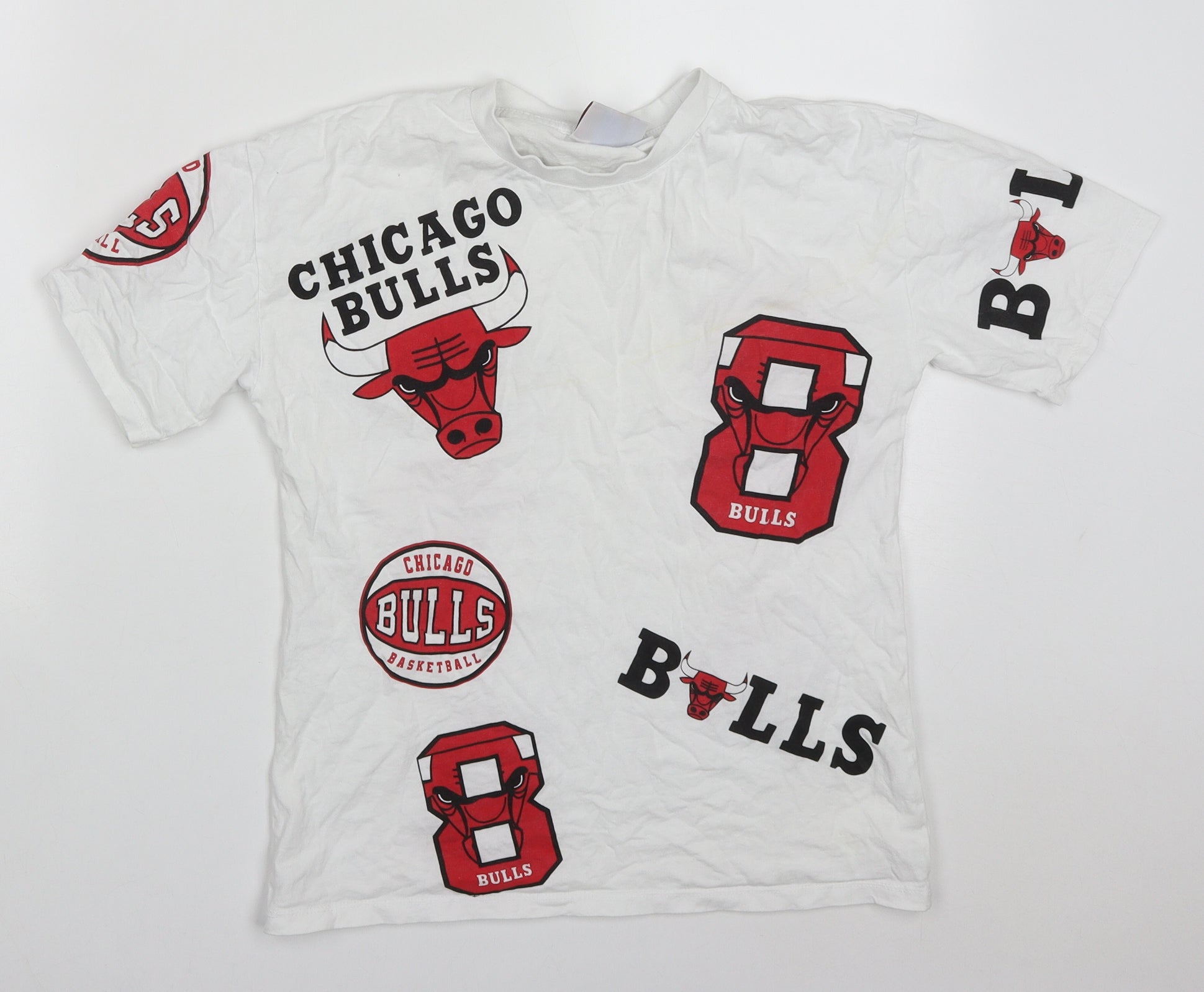 Boys White Cotton Basic T-Shirt Size 10-11 Years Crew Neck Pullover - NBA Bulls