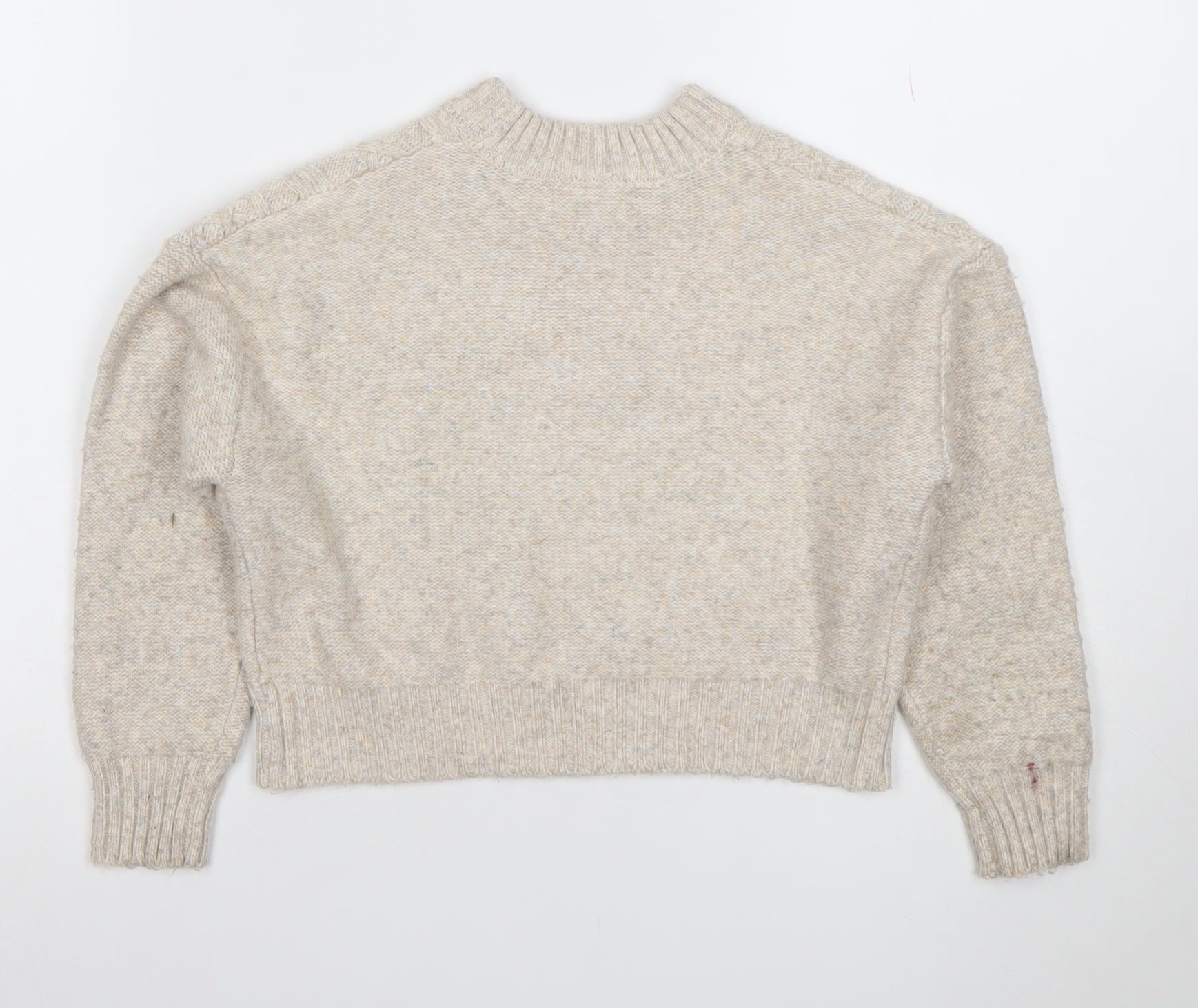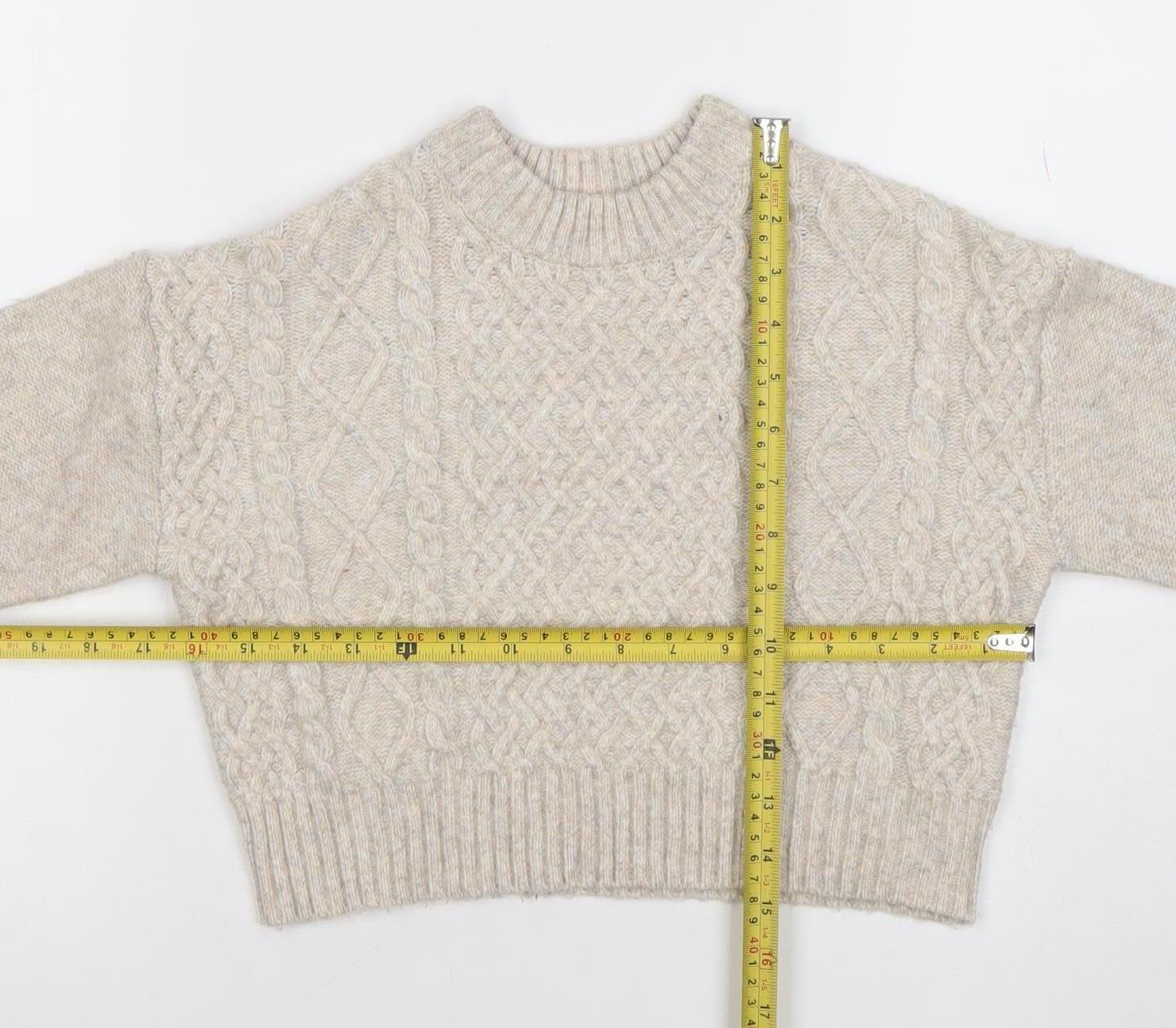 Girls Beige Cable Knit Pullover Jumper 7-8 Years Crew Neck Winter