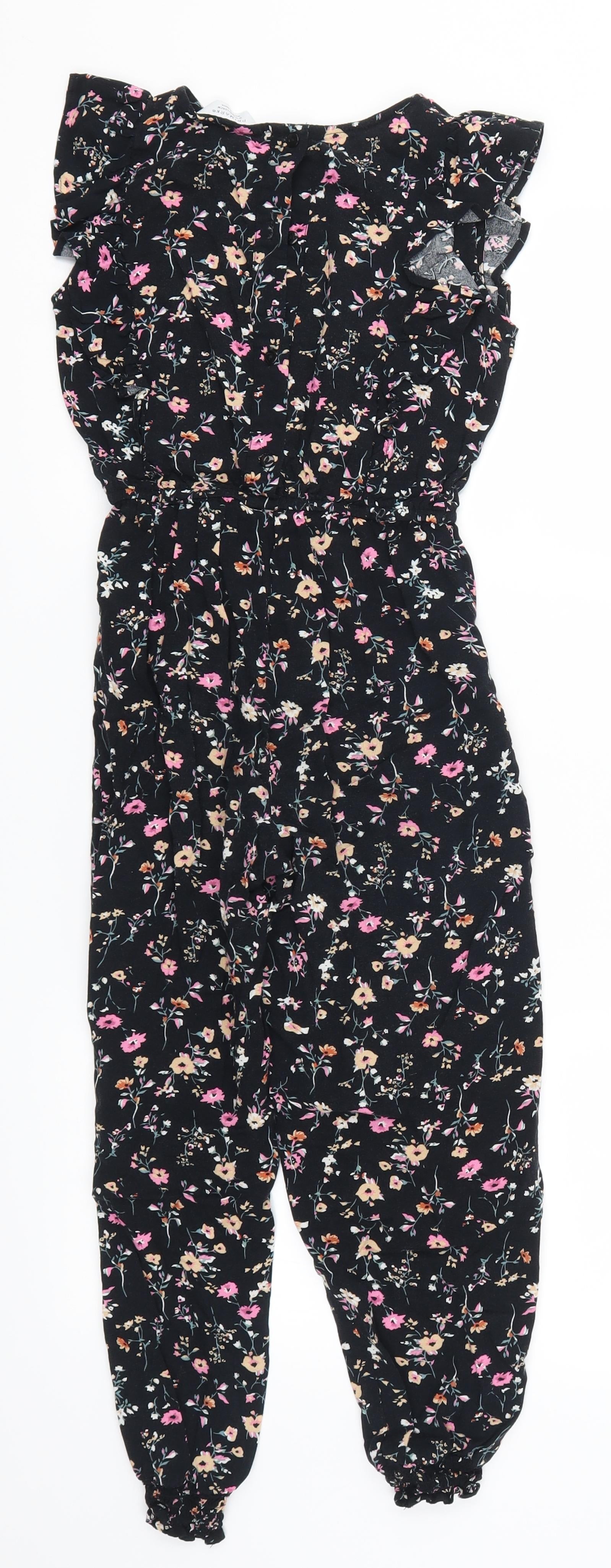 Girls Black Floral Jumpsuit One-Piece Size 8-9 Years