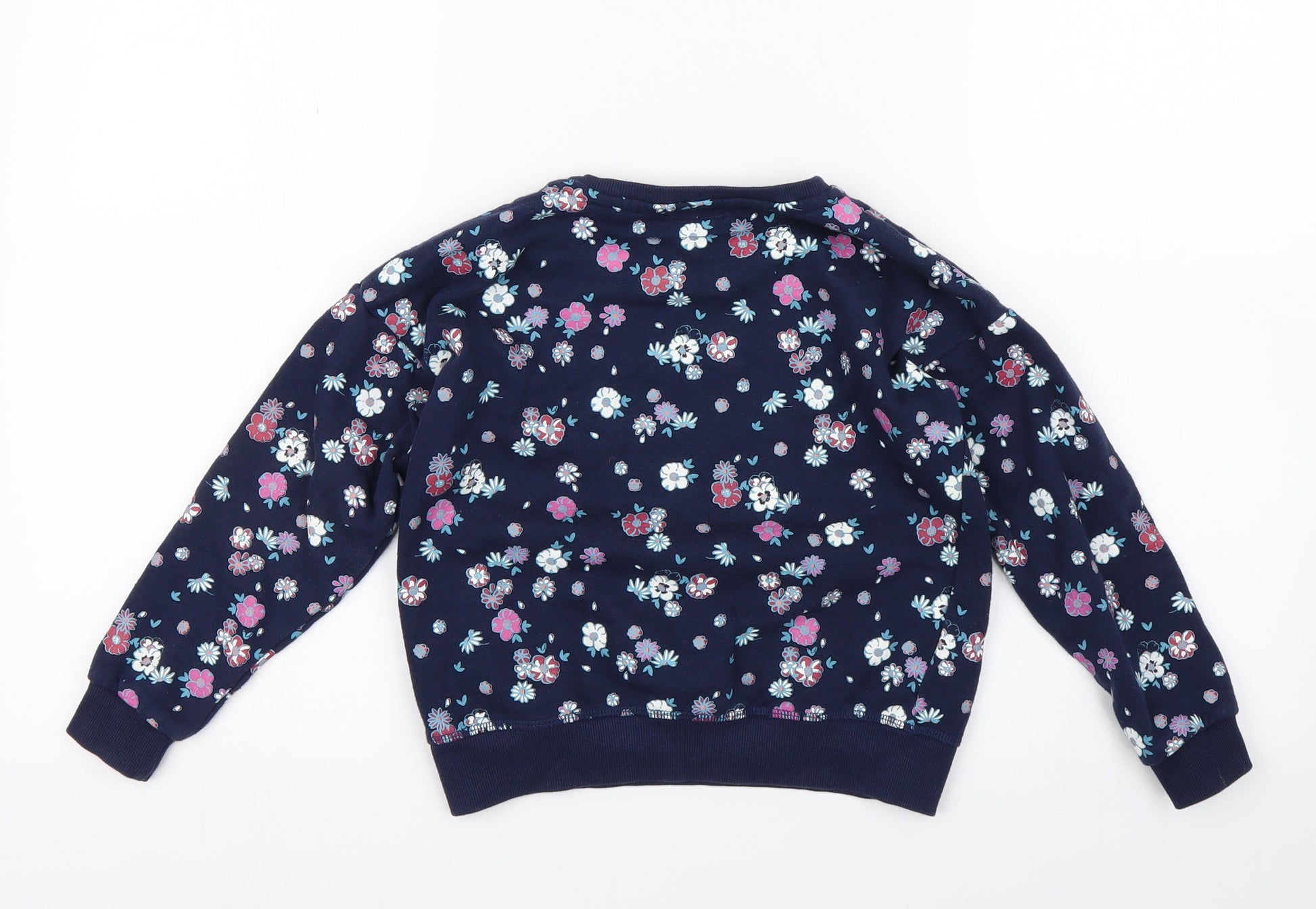 Girls Blue Floral Pullover Sweatshirt Size 6-7 Years - amour