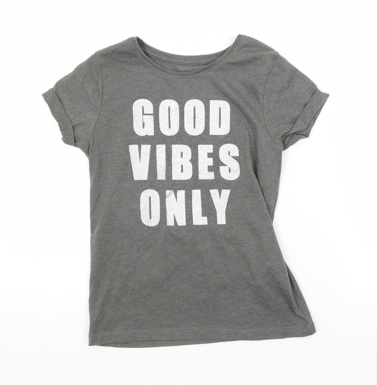 Girls Grey Basic T-Shirt Size 8-9 Years - GOOD VIBES