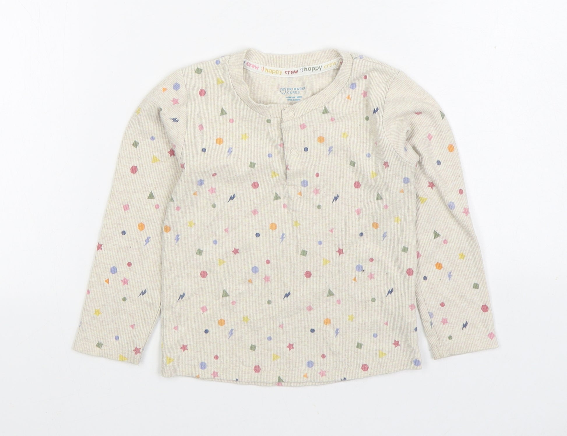 Girls Grey Geometric Cotton Basic T-Shirt Size 2-3 Years Round Neck Button