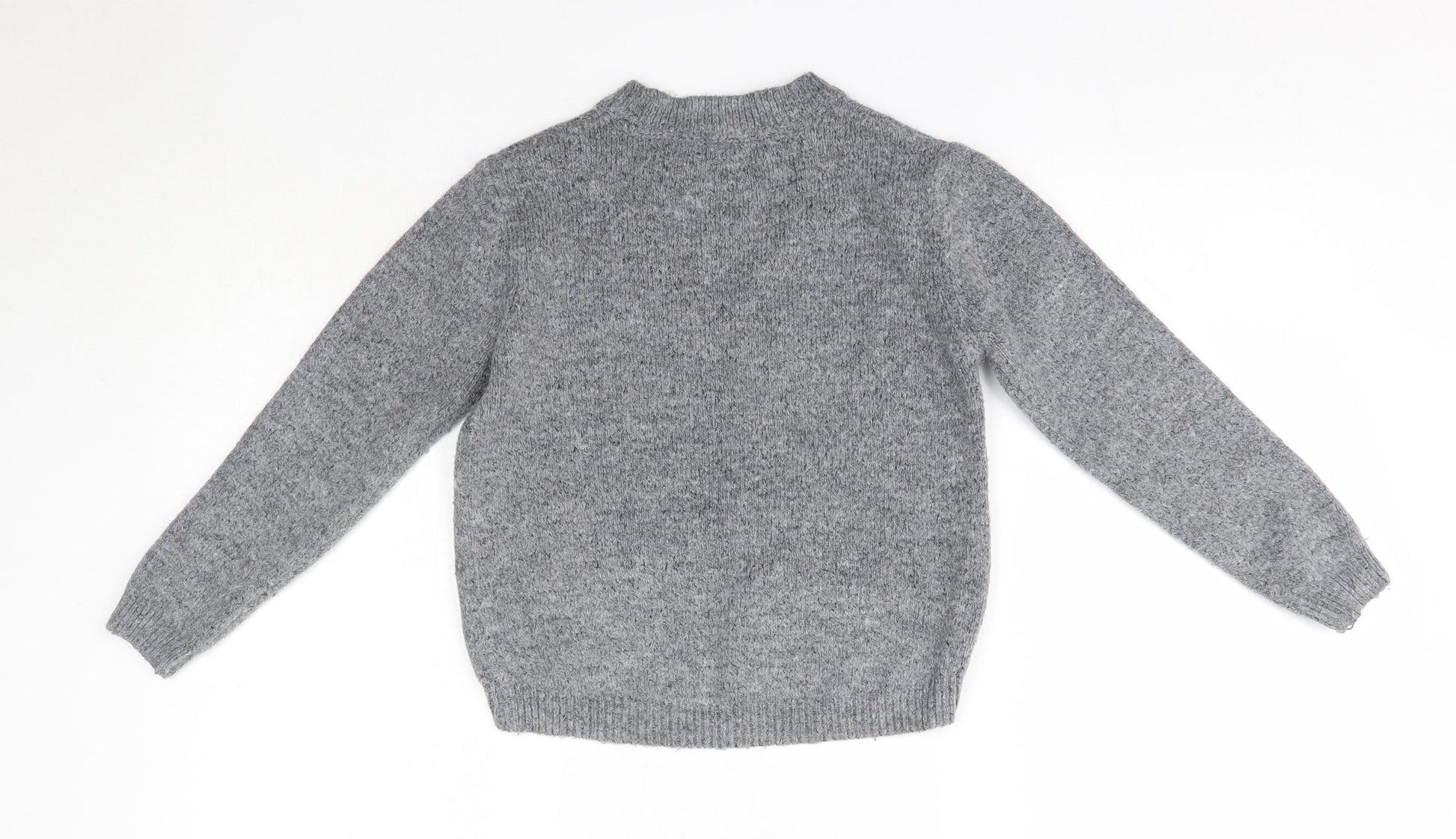 Girls Grey Round Neck Acrylic Pullover Jumper Size 7-8 Years