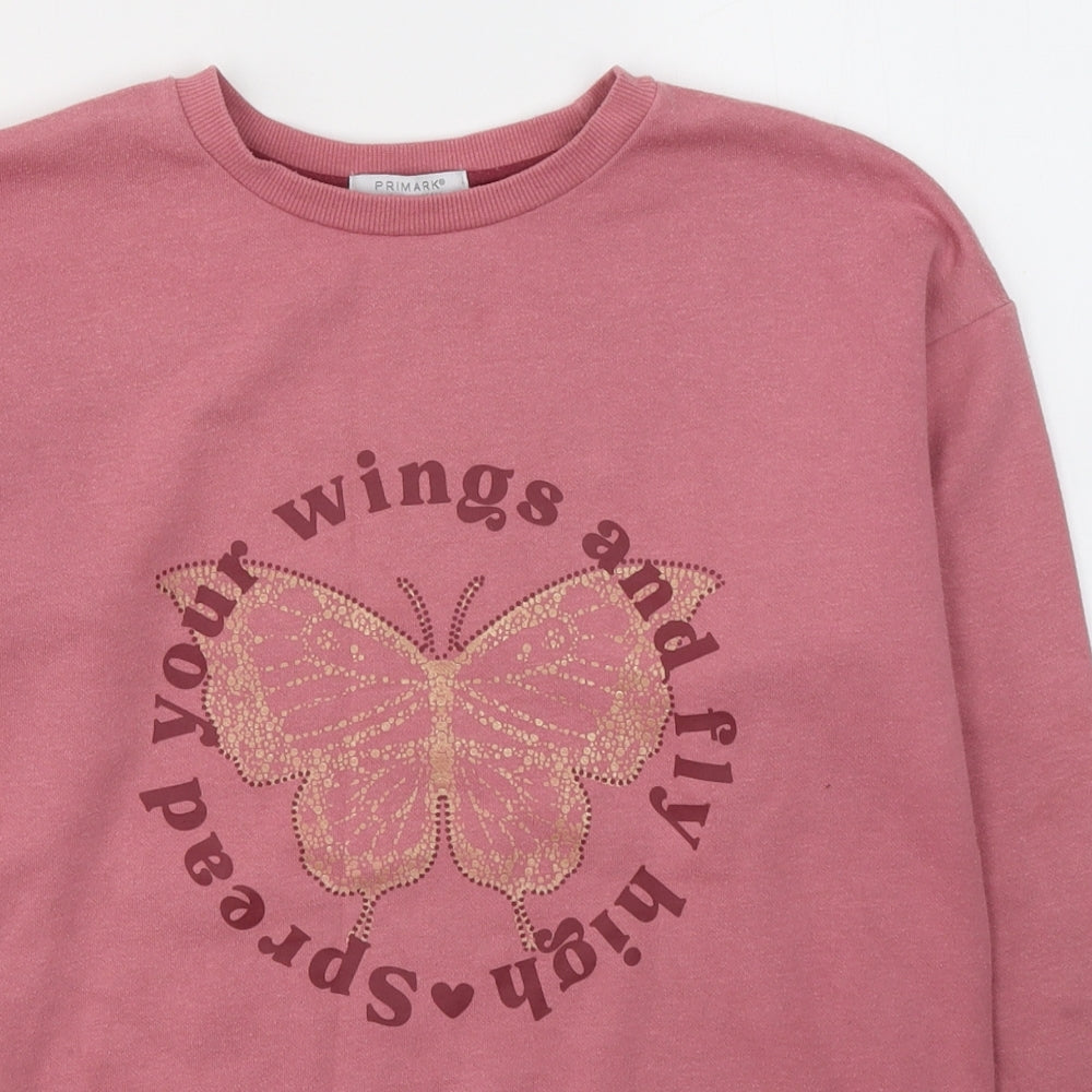 Girls Pink Cotton Pullover Sweatshirt Size 12-13 Years Pullover - Butterflie
