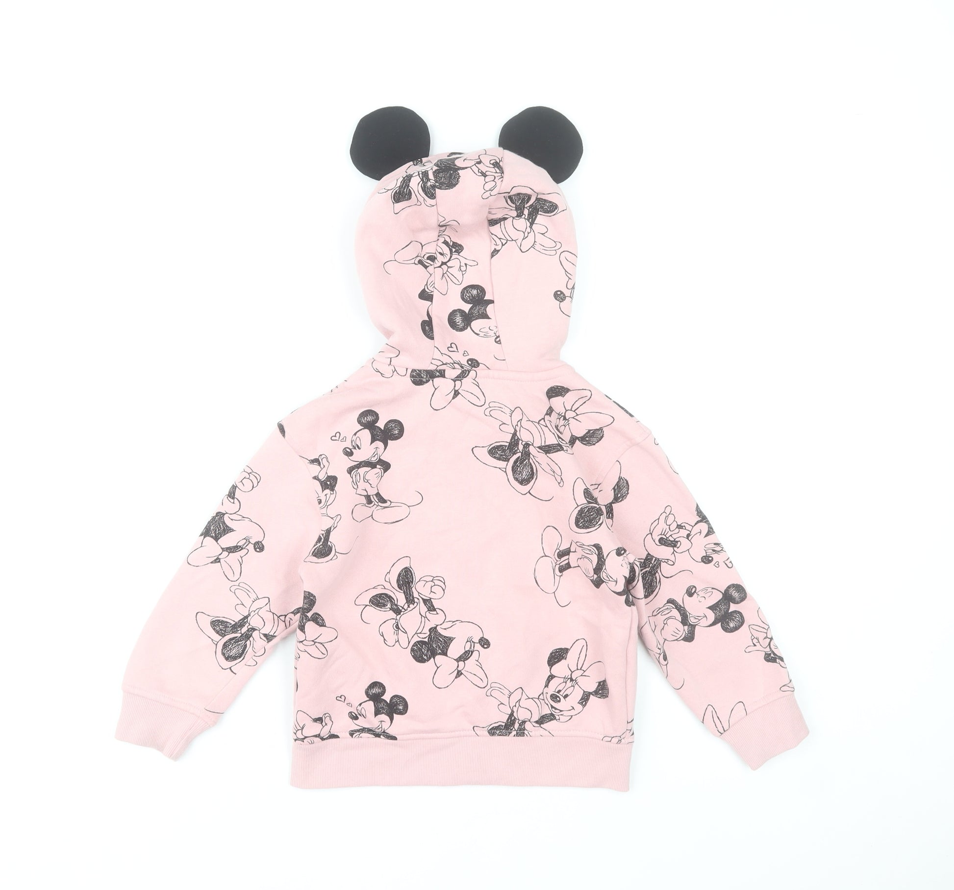Girls Pink Minnie Mouse Full Zip Hoodie 3-4 Years Disney Fleece