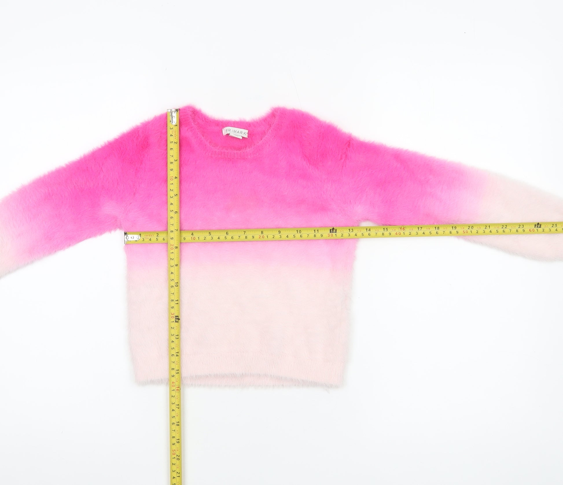 Bring a burst of vibrant colour and cosy comfort to her wardrobe with this girls’ Primark fuzzy pullover jumper. Perfectly suited for the chillier days of the year, this soft and snuggly jumper showcases a cheerful ombre design that fades from bright pink at the top to a delicate light blush towards the hem. The crew neckline and long sleeves ensure warmth and comfort, making it ideal for layering over a T-shirt or pairing with jeans, leggings, or cords. Crafted from 100% polyamide, the knit fabric offers a luxuriously soft, faux-fur texture that feels gentle against the skin while remaining lightweight enough for all-day wear. Designed with everyday style and comfort in mind, this jumper is the perfect go-to for playdates, outings, and family occasions alike. The relaxed pullover fit makes it easy to put on and take off, and the colourblock ombre effect adds a playful modern charm that any girl will love. Ideal for autumn and winter seasons, this cosy piece works wonderfully under a coat or jacket, transitioning effortlessly from outdoor adventures to indoor comfort. The beautiful fuzzy texture gives the jumper an invitingly plush look, offering both warmth and on-trend appeal. In excellent pre-loved condition with no tags but no visible wear, this jumper still has plenty of life left in it. A perfect combination of style and practicality, it brings a touch of fun to any young wardrobe without compromising on comfort. Treat your little one to this soft, fashionable Primark jumper to keep her snug, stylish, and full of colour through the cooler months.