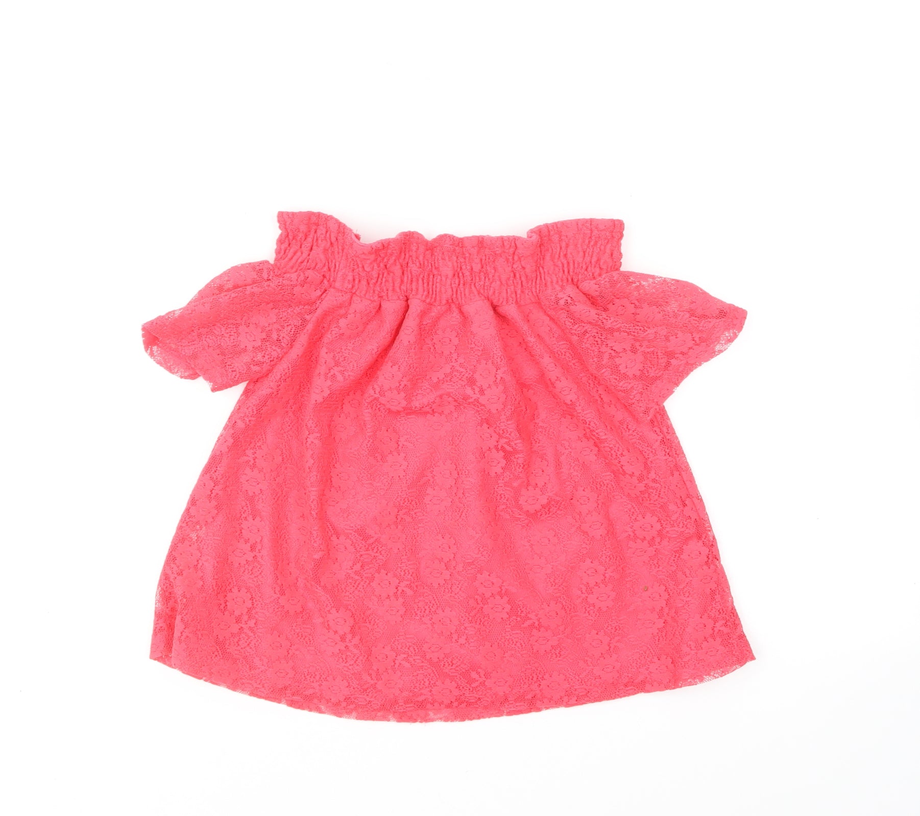 Girls Pink Polyester Basic T-Shirt Size 10-11 Years Off the Shoulder
