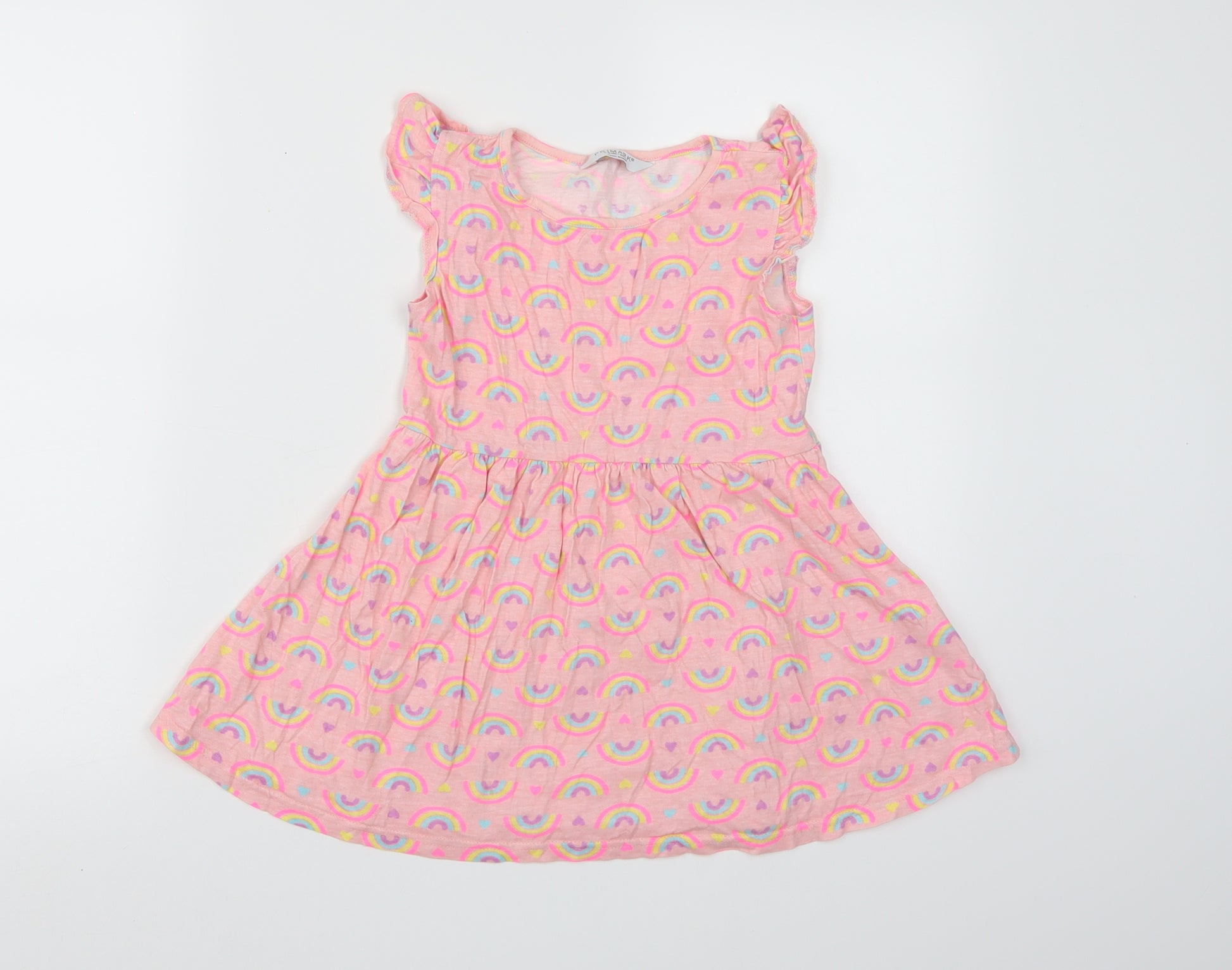 Girls Pink T-Shirt Dress Size 7-8 Years - Rainbow